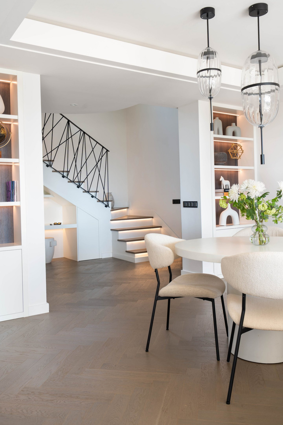Discover Marbella's best lifestyle in this fully renovated duplex penthouse, where top-quality materials and exquisite craftsmanship converge to create a truly exceptional home. This corner unit offers unparalleled privacy and tranquility, boasting panoramic views stretching from the mountains to the sea. Step inside to find thoughtfully designed details, such as bespoke lighting, built-in bookshelves, and elegant wall moldings.