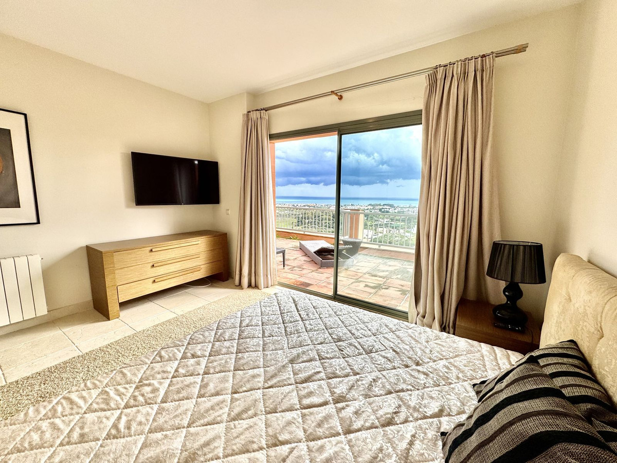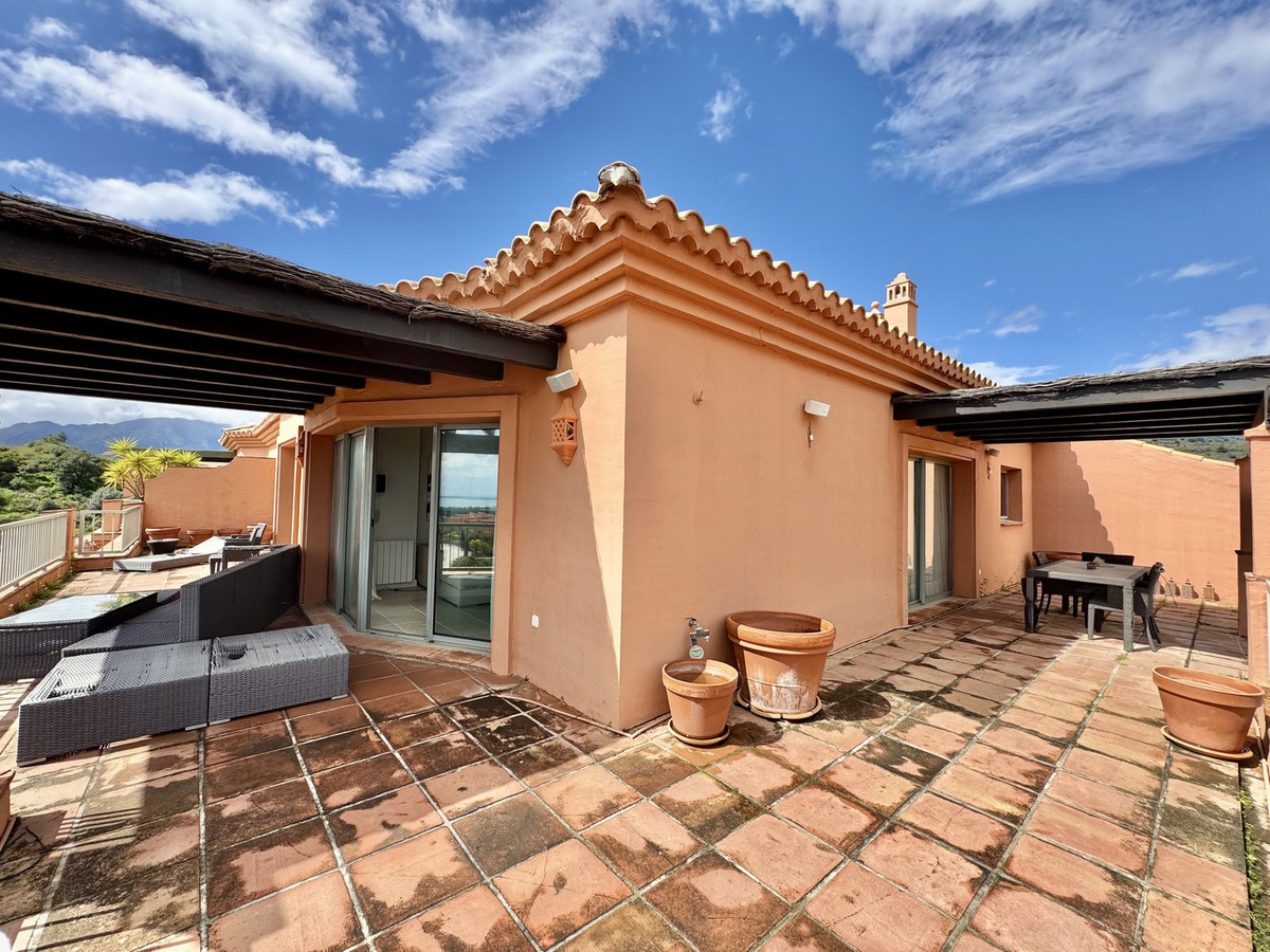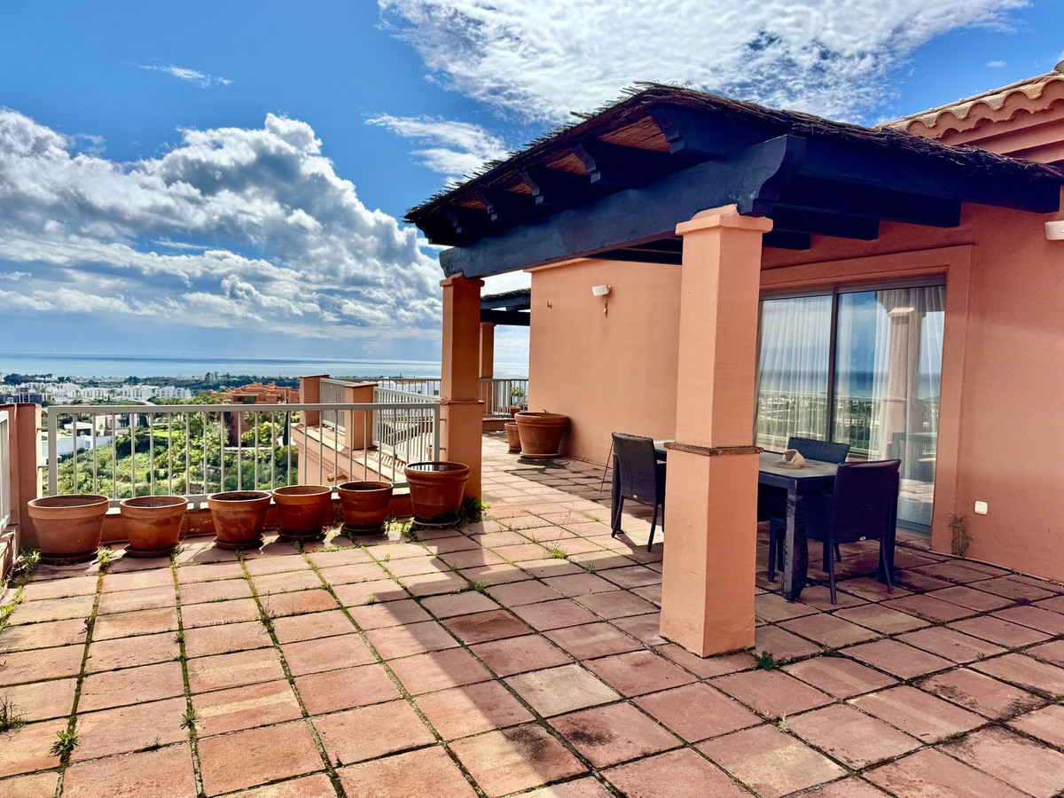 This 3-bed corner penthouse offers breathtaking sea, Gibraltar, and golf-front views. The property features 3 spacious bedroom suites, each with access to a terrace, and 156m² of living space. It also boasts a large 142m² terrace for seamless indoor-outdoor living, with a kitchen terrace and ample storage.