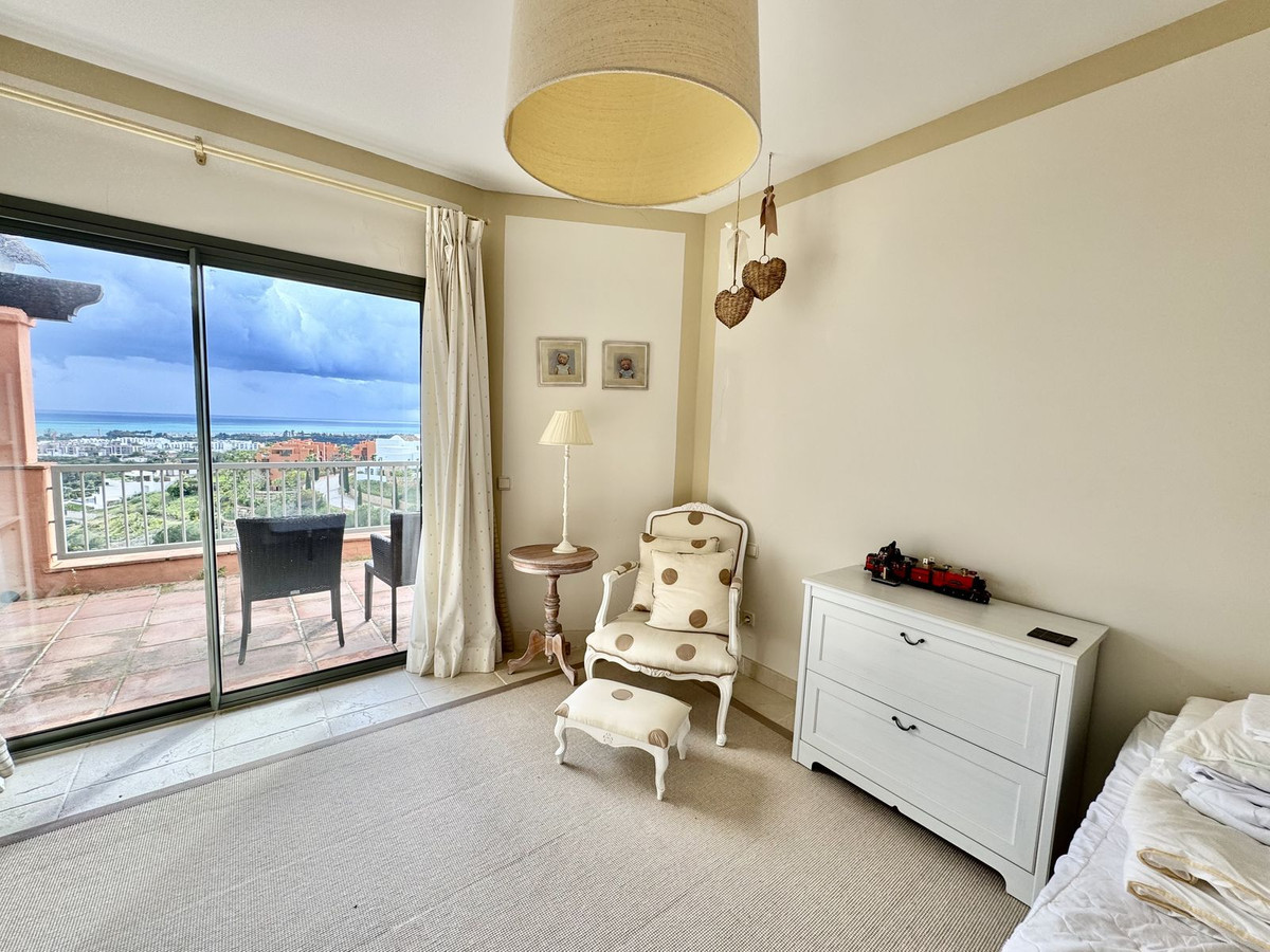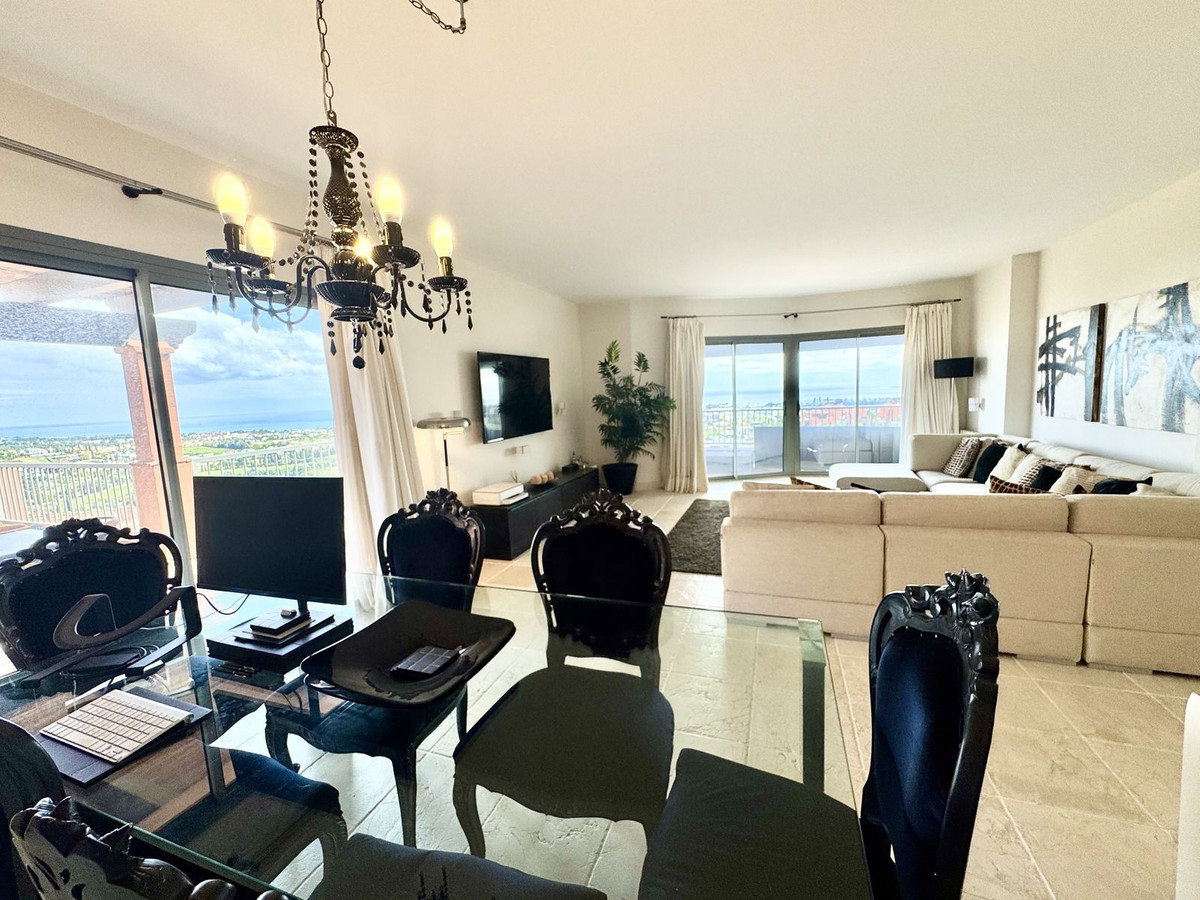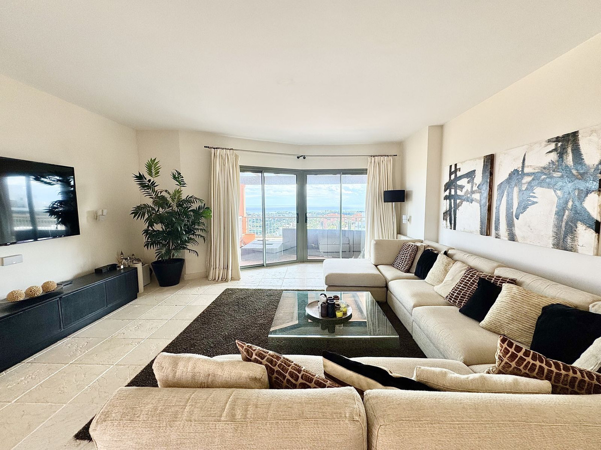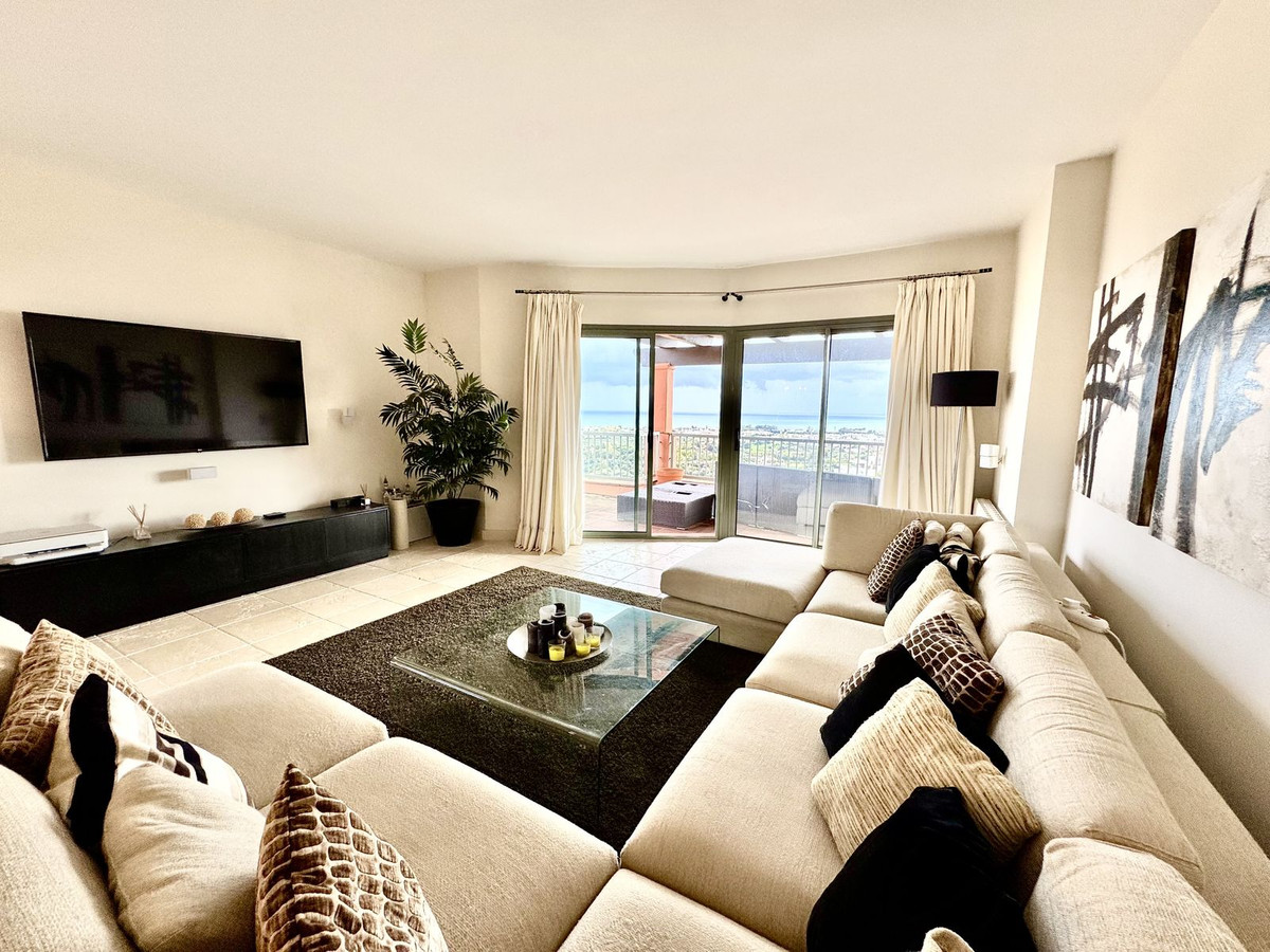 This 3-bed corner penthouse offers breathtaking sea, Gibraltar, and golf-front views. The property features 3 spacious bedroom suites, each with access to a terrace, and 156m² of living space. It also boasts a large 142m² terrace for seamless indoor-outdoor living, with a kitchen terrace and ample storage.