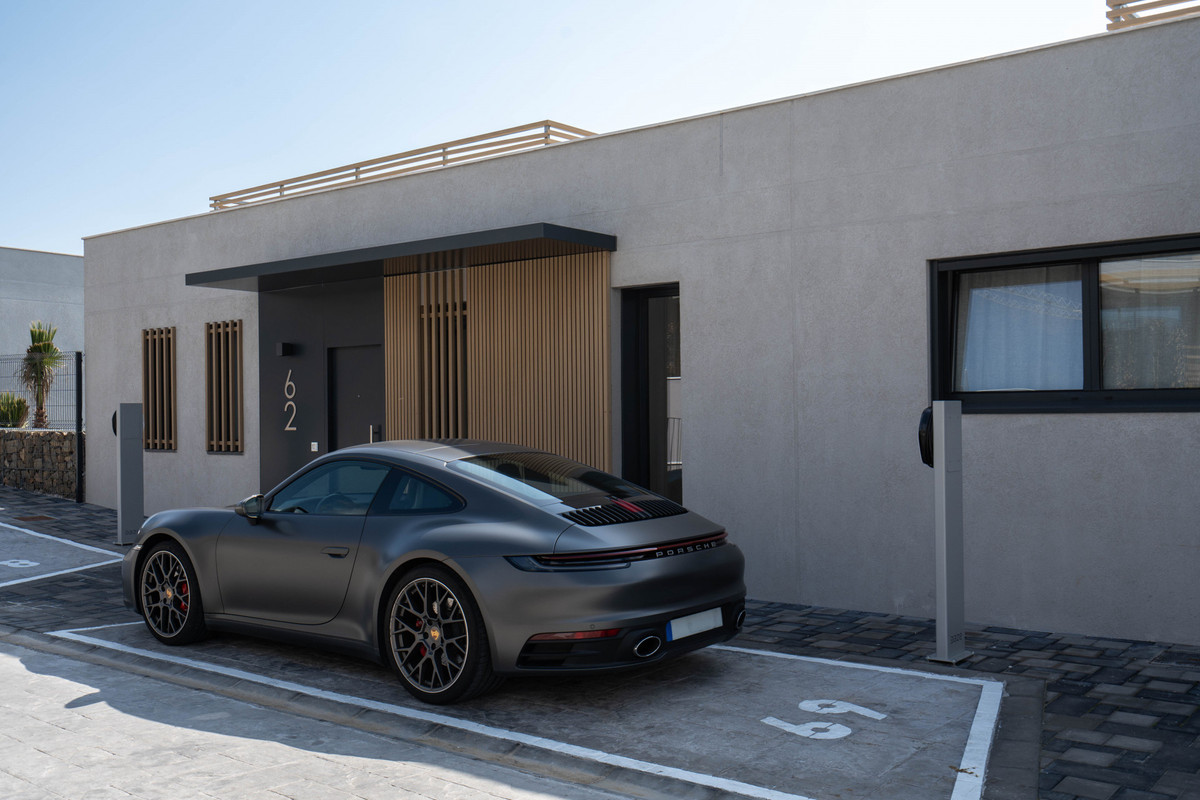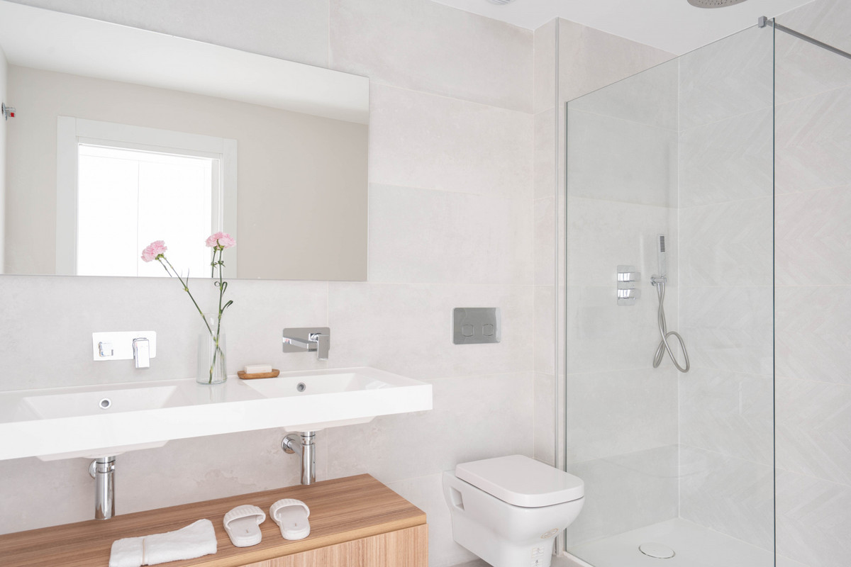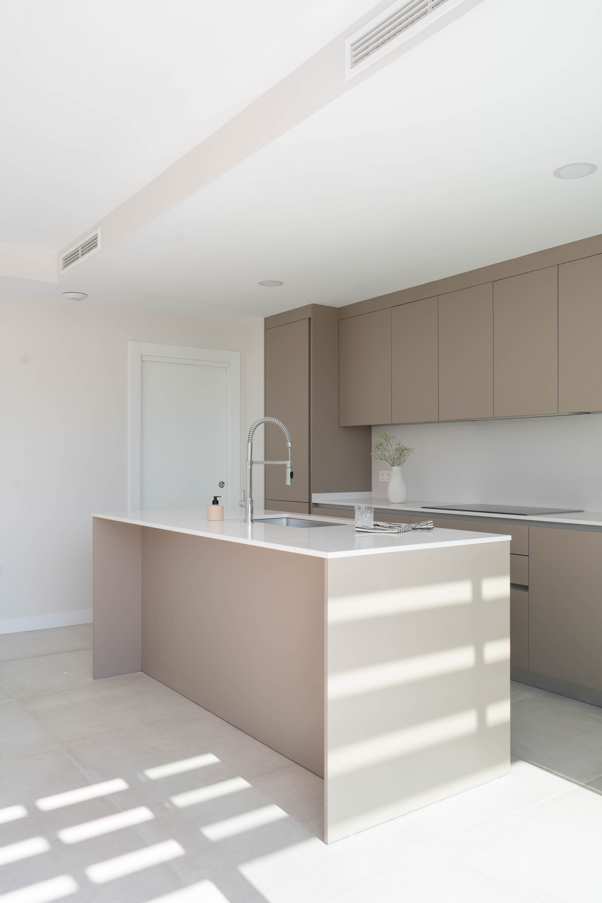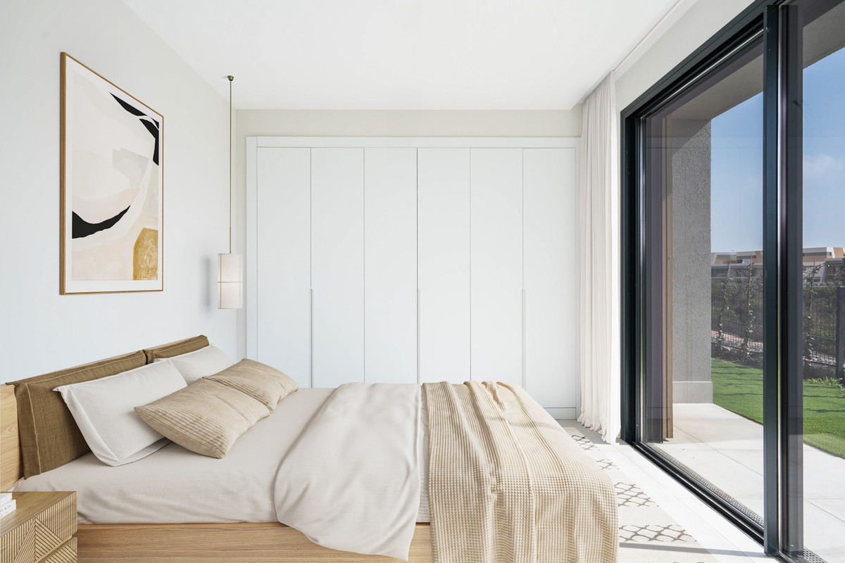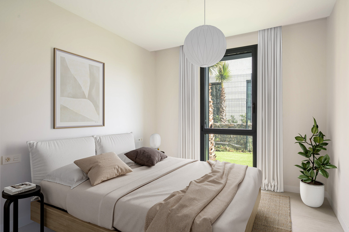 Detta hem har designats för att balansera stil och komfort. De öppna gemensamma ytorna och de rymliga interiörerna är skapade för att fylla rummet med naturligt ljus och ge en otroligt inbjudande boendeupplevelse. Den stora vardagsrummet har stora fönster och högkvalitativa porslinsplattor, vilket skapar en ljus och luftig miljö som maximerar dagsljuset under hela dagen. Den rymliga terrassen erbjuder panoramautsikt över havet—en idealisk plats att koppla av och njuta av fantastiska solnedgångar. Köket flödar sömlöst in i vardagsrummet, vilket bidrar till den öppna och friska atmosfären som passar perfekt för avslappnat och bekvämt vardagsliv. Förstklassiga materialval, inklusive kvartsbänkskivor, inbyggda apparater och ambient LED-belysning, höjer ytterligare rummet och ger en känsla av sofistikering och värme. I badrummen ger stora porslinsplattor elegans och understryker den noggrannhet och kvalitet som präglar designen.