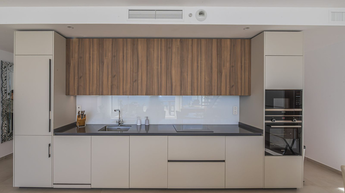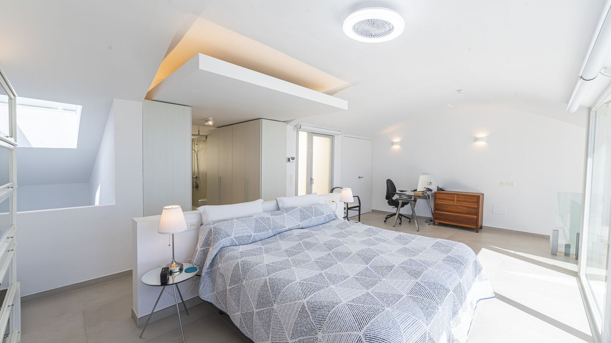 Byggd på 2 nivåer: på entréplanet finns 2 mysiga sovrum, ett komplett badrum, modernt kök med SIEMENS apparater integrerade i vardagsrummet och en magnifik terrass med grillplats; och på övervåningen, för att njuta av avskildhet och utsikt har vi sovrummet, med omklädningsrum och badrum med eget badrum, det finns också tvättstugan och ett terrass-solarium med spektakulär utsikt.