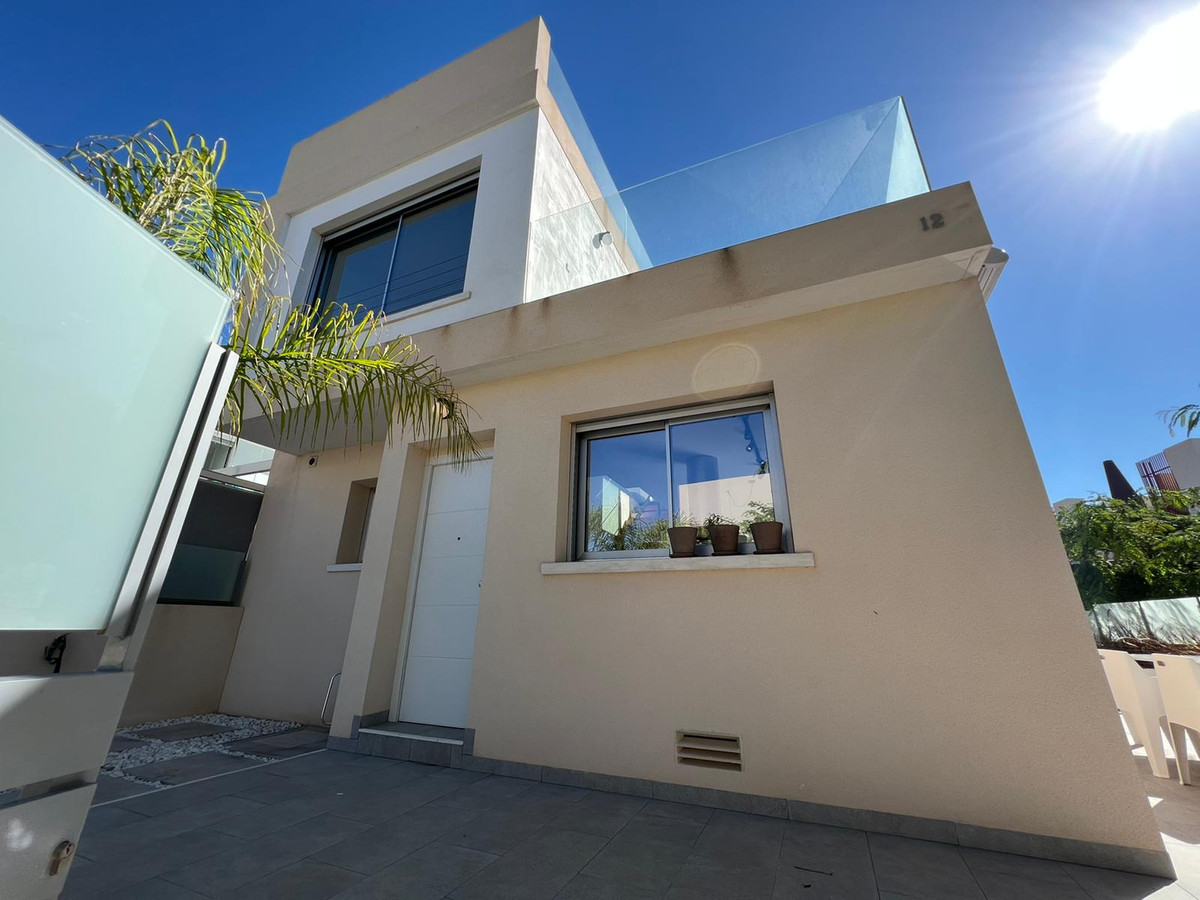 Vi är verkligen glada att kunna presentera denna nybyggda lyxvilla vid havet som ligger bara ett par minuters promenadavstånd till de fantastiska sandstränderna i Mil Palmeras, byggd till en hög modern standard byggd i 2 våningar plus en stor takterass och olika terrassutrymmen med havsutsikt. Öppen planlösningen vardagsrummet matplatsen är verkligen inbjudande med stora fönster från golv till tak och dörrar som öppnar upp till en vacker låg underhålls söderläge terrass för underhållning och poolområde. På denna våning hittar du också ett sovrum med dubbelsäng med direkt tillgång till en terrass och garderober, badrum och en stor utrustad tvättstuga med förvaring. På nästa våning finns ytterligare 2 sovrum med eget badrum, garderober, en stor terrass i söderläge med trappor upp till solariet med öppen utsikt över havet och omgivningarna. Denna speciella fastighet vid havet ligger på hörnet, har parkering utanför på gatan och ligger i ett utmärkt läge!