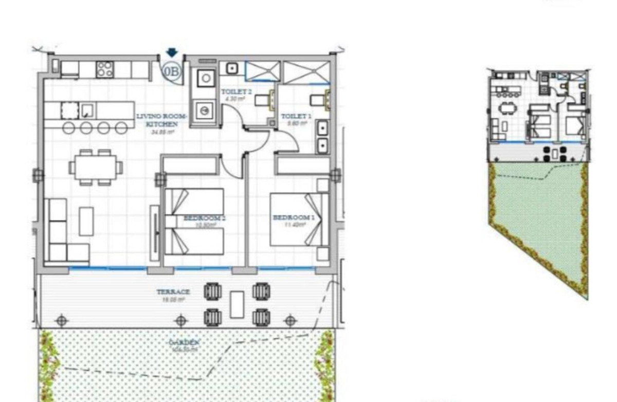 Bedrooms: The property features two spacious and bright bedrooms, with enough space for double or single beds, built-in wardrobes, and windows that allow natural light to enter throughout the day. The master bedroom overlooks the garden, creating a peaceful and relaxing atmosphere.