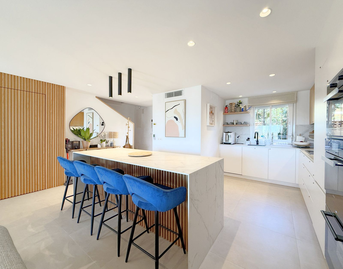Vackert radhus helt renoverat. Beläget i ett lugnt bostadsområde i Estepona, bredvid stormarknader, affärer och en internationell skola och bara 200 meter från stranden och dess vackra strandpromenad med en mängd olika strandbarer, restauranger och nöjesområden. Hamnarna i Estepona och La Duquesa, båda inom 5 minuters köravstånd.