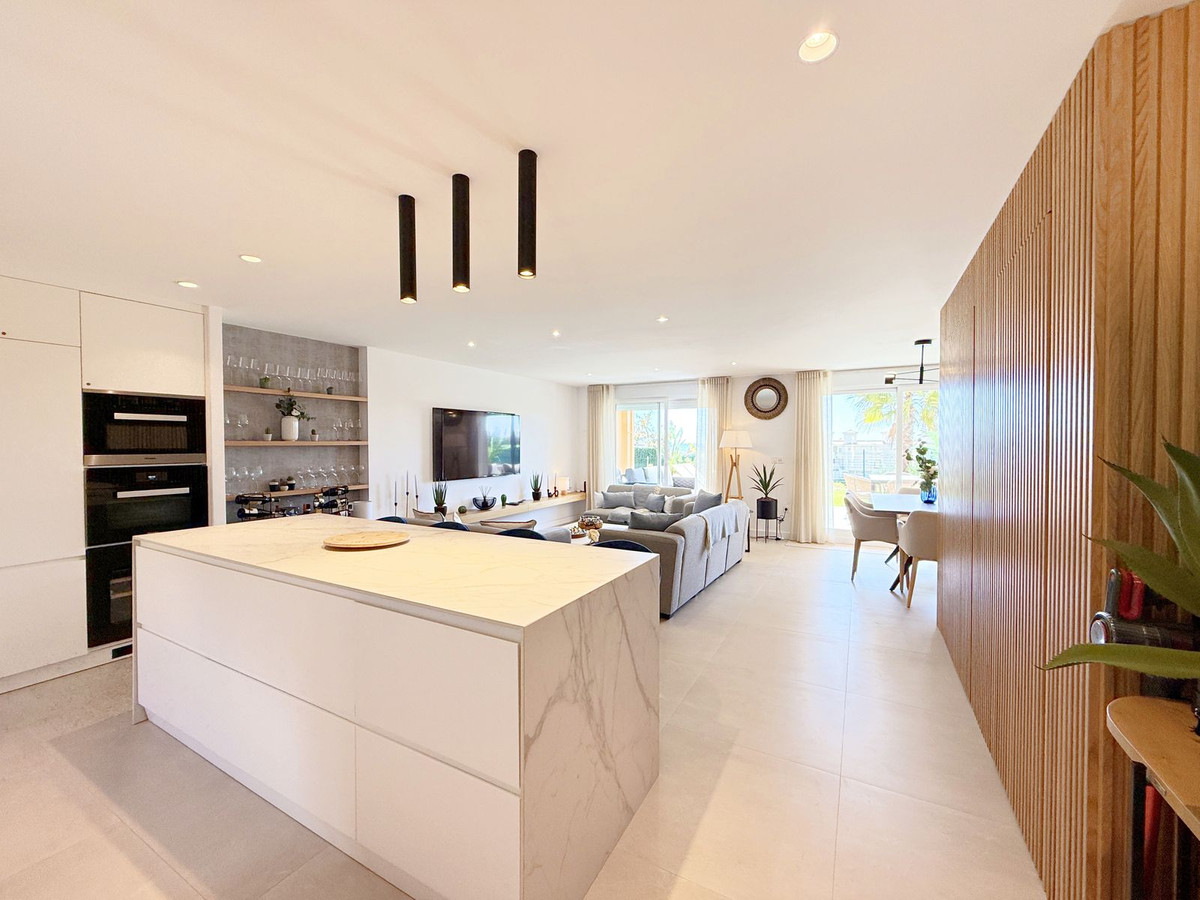 Denna fantastiska fastighet, nyligen renoverad med högkvalitativa material, är fördelad på 2 våningar och solarium. Söderläge, det har naturligt ljus hela dagen. När vi kommer in hälsas vi av ett ljust och rymligt vardagsrum med integrerat kök. Genom stora fönster ansluter de till en täckt terrass med markiser och fläktar och till den privata trädgården på 60 m2, med havsutsikt.
