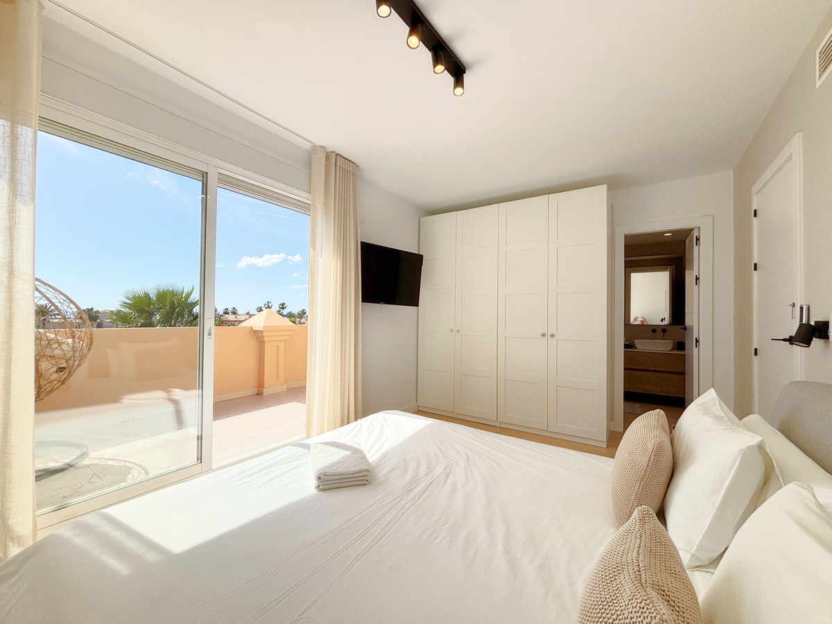 På första våningen hittar vi de 3 sovrummen, ett av dem med eget badrum och terrass där du kan gå upp till solarium och njuta av panoramautsikten över hela kusten.