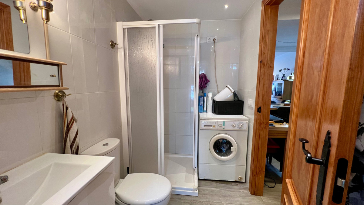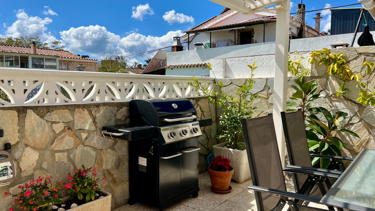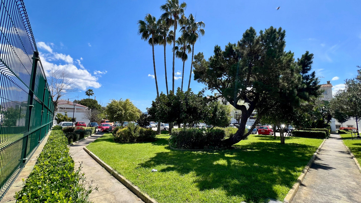 Det öppna köket och vardagsrummet skapar en idealisk yta för både vardagsliv och sociala tillställningar, med direkt anslutning till en privat terrass på framsidan, utrustad med en bioklimatisk pergola för året runt-bruk. På baksidan har bostaden direkt tillgång till den lummiga gemensamma trädgården, vilket förstärker känslan av tillgänglia umgängesytor. På entréplan finns ett sovrum och ett fullt utrustat badrum, medan den övre våningen rymmer två sovrum och ett komplett badrum. Master bedroom har en liten terrass med utsikt över poolområdet och Gibraltar. Dessutom finns en stor täckt takterrass som erbjuder gott om utrymme för avkoppling, sociala tillställningar och möjligheten att njuta av det andalusiska klimatet.
