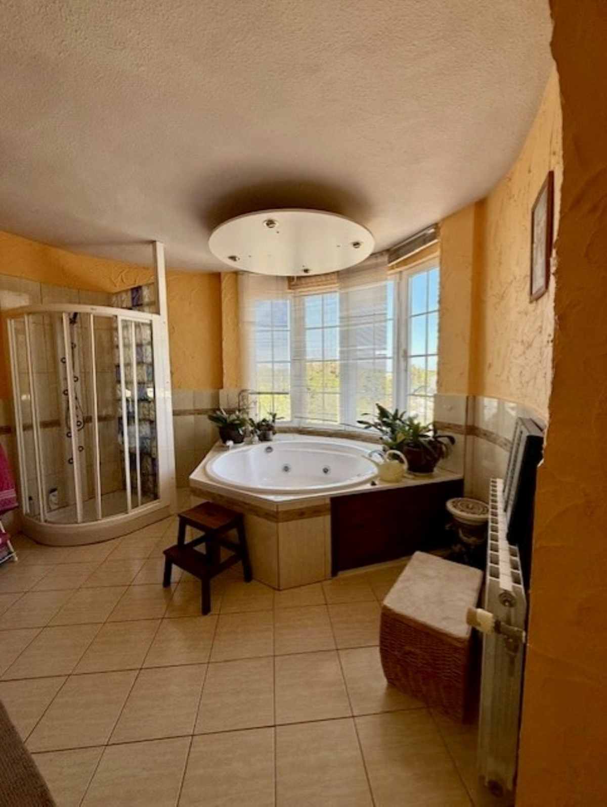 Upstairs, the master suite is a standout feature with stunning sea views, a private terrace, and an elegant en-suite bathroom. Another spacious double bedroom also benefits from its own private terrace — perfect for morning coffee or evening drinks.