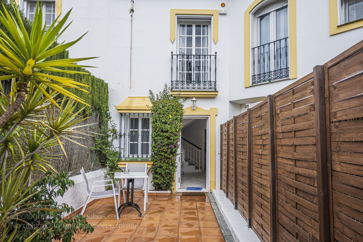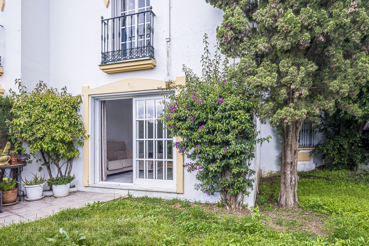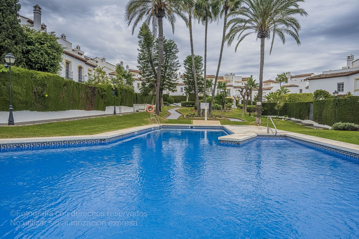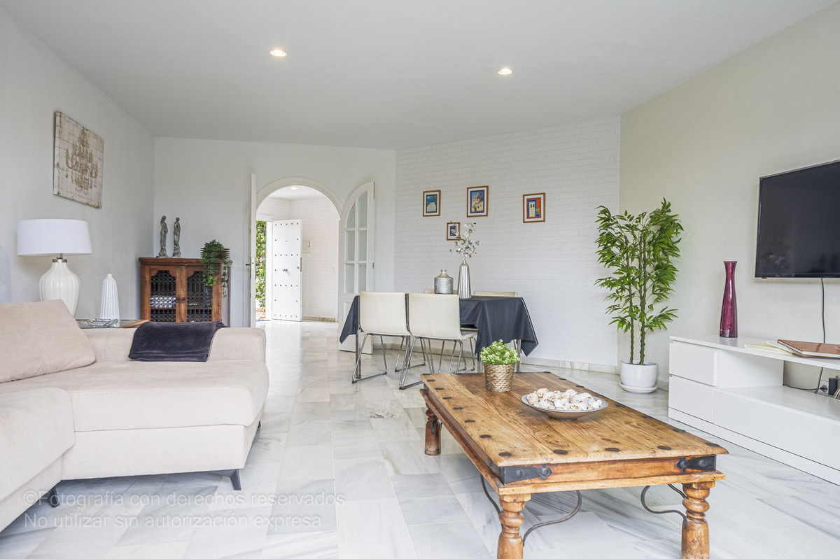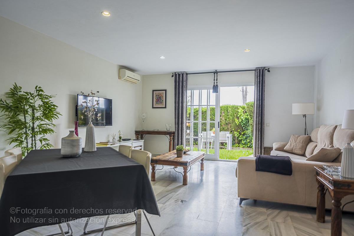 Detta charmiga radhus ligger i ett lugnt bostadsområde i Bel-Air, i den eftertraktade New Golden Mile, och är perfekt för dem som letar efter rymd, komfort och ett liv nära havet. Det nås via en välkomnande innergård som leder till en entréhall som öppnar upp till ett rymligt vardagsrum med direkt tillgång till en privat trädgård, perfekt för utomhusliv. Från denna trädgård finns direkt tillgång till den magnifika gemensamma poolen och dess grönområden, vilket skapar en resortkänsla året runt.