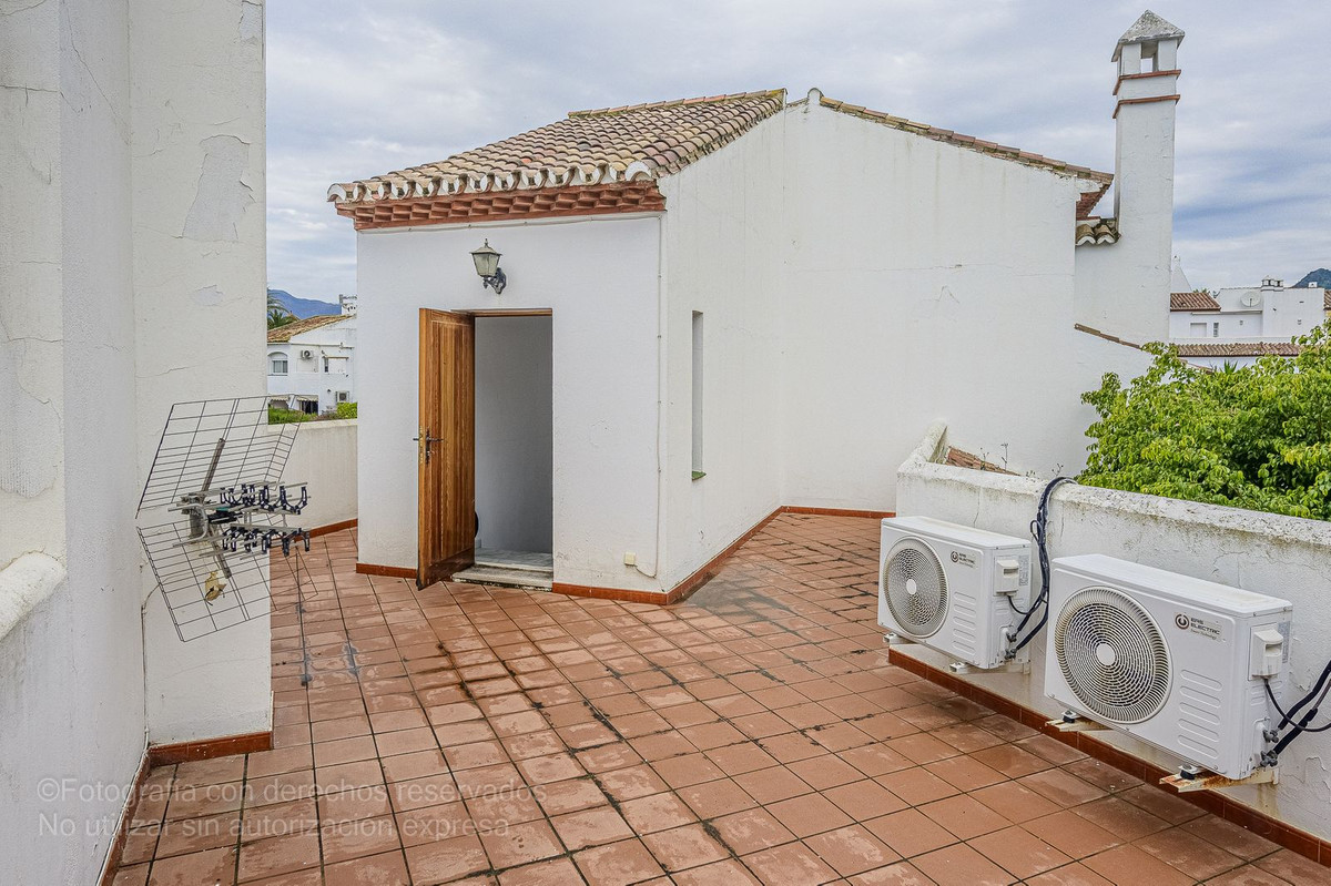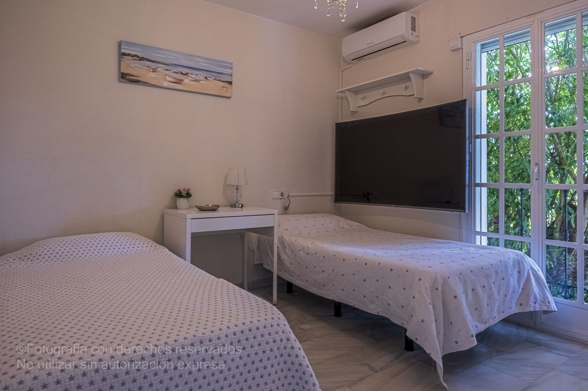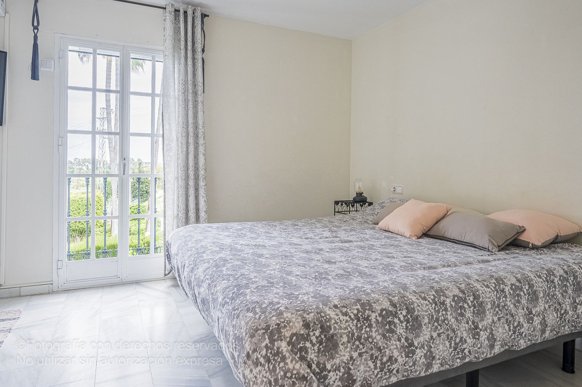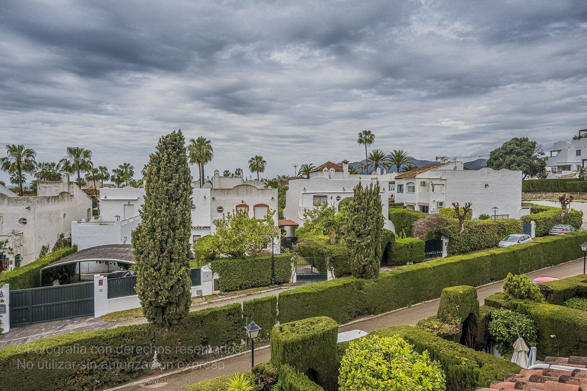 Detta charmiga radhus ligger i ett lugnt bostadsområde i Bel-Air, i den eftertraktade New Golden Mile, och är perfekt för dem som letar efter rymd, komfort och ett liv nära havet. Det nås via en välkomnande innergård som leder till en entréhall som öppnar upp till ett rymligt vardagsrum med direkt tillgång till en privat trädgård, perfekt för utomhusliv. Från denna trädgård finns direkt tillgång till den magnifika gemensamma poolen och dess grönområden, vilket skapar en resortkänsla året runt.