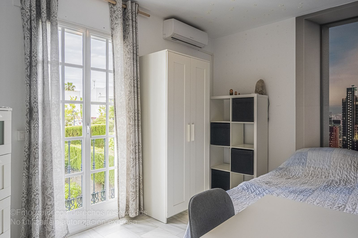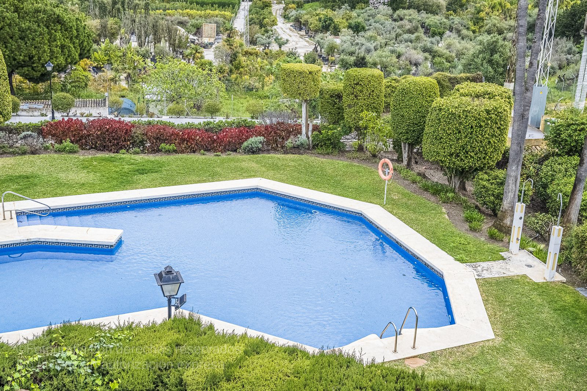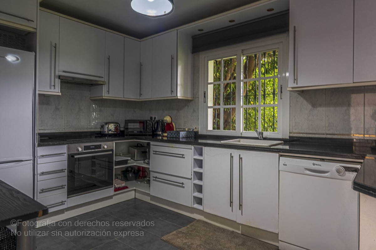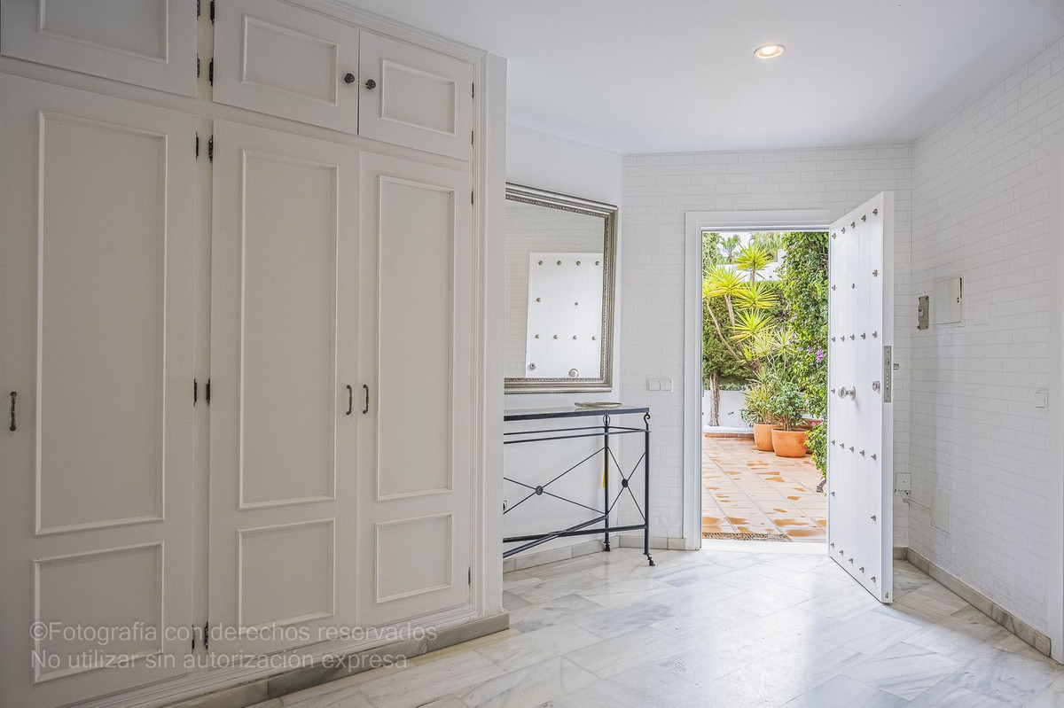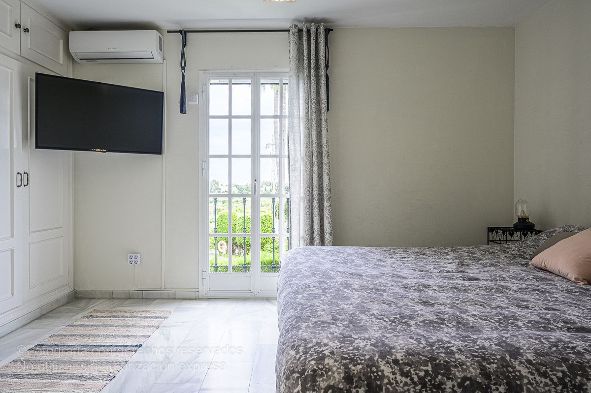 Detta charmiga radhus ligger i ett lugnt bostadsområde i Bel-Air, i den eftertraktade New Golden Mile, och är perfekt för dem som letar efter rymd, komfort och ett liv nära havet. Det nås via en välkomnande innergård som leder till en entréhall som öppnar upp till ett rymligt vardagsrum med direkt tillgång till en privat trädgård, perfekt för utomhusliv. Från denna trädgård finns direkt tillgång till den magnifika gemensamma poolen och dess grönområden, vilket skapar en resortkänsla året runt.