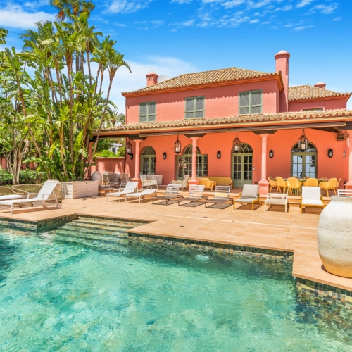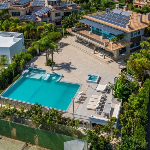 For leisure and entertainment, the villa features an impressive lower level, complete with a custom bar, a TV lounge, and ambient lighting that transforms the atmosphere both indoors and across the covered terraces. A private driveway leads to a secure entrance and a covered carport, ensuring exclusivity and privacy. This exceptional villa presents a rare opportunity to experience contemporary elegance in one of Marbella's most sought-after locations.