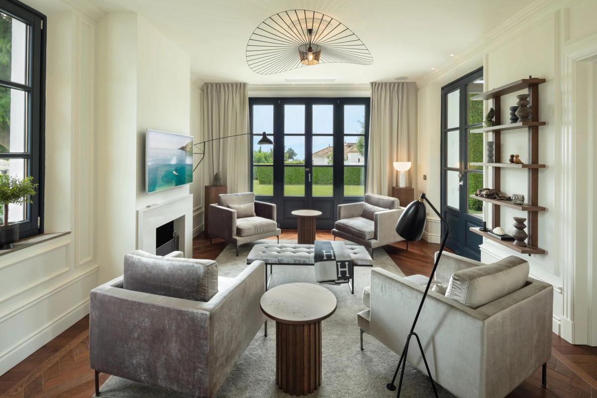 Designed with a blend of Andalusian architecture and Mediterranean elegance, Casa Castaña features lush gardens, spacious terraces, and a large pool, creating an idyllic outdoor living space. Inside, the villa showcases impeccable craftsmanship with Italian Oak herringbone flooring and a sophisticated neutral palette, offering a seamless flow between living areas with panoramic garden views.
