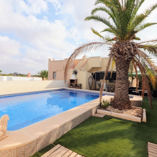 Discover your dream home in this exquisite villa that offers the perfect blend of year-round living and idyllic extended holidays. Boasting breathtaking views of the Pink Lakes of Torrevieja and the sea, this property is nestled in the heart of nature with convenient access to essential services. The community features a generously sized communal pool, while the villa itself comes complete with a private swimming pool, providing the ideal setting for relaxation and entertainment. The living space is bathed in natural light, thanks to large windows that offer a captivating view of the pool. The open-plan kitchen, styled in a modern Scandinavian fashion, seamlessly connects to the lounge, creating a welcoming and contemporary atmosphere. On the ground floor, a spacious bedroom with an ensuite bathroom awaits, along with an additional bathroom for the convenience of guests. The property also provides direct access to the forth bedroom/living room from the inside, currently utilized as living room and cinema area. Venture to the first floor to discover two more generously sized bedrooms and another bathroom. Large terraces and a solarium contribute to the allure of this property, ensuring you can fully savor the vibrant Spanish lifestyle. Inside garage and utility room will come with the property. Situated in the charming area of Orihuela Costa, this home offers proximity to the renowned Pink Lakes of Torrevieja, providing a scenic backdrop for daily living. Torrevieja, a coastal town nearby, further enhances the appeal with its vibrant atmosphere, offering a myriad of amenities, cultural experiences, and pristine beaches. Secure your opportunity to experience the epitome of Mediterranean living - book your viewing now and step into a world of luxury and comfort. The house has a tourist license.
