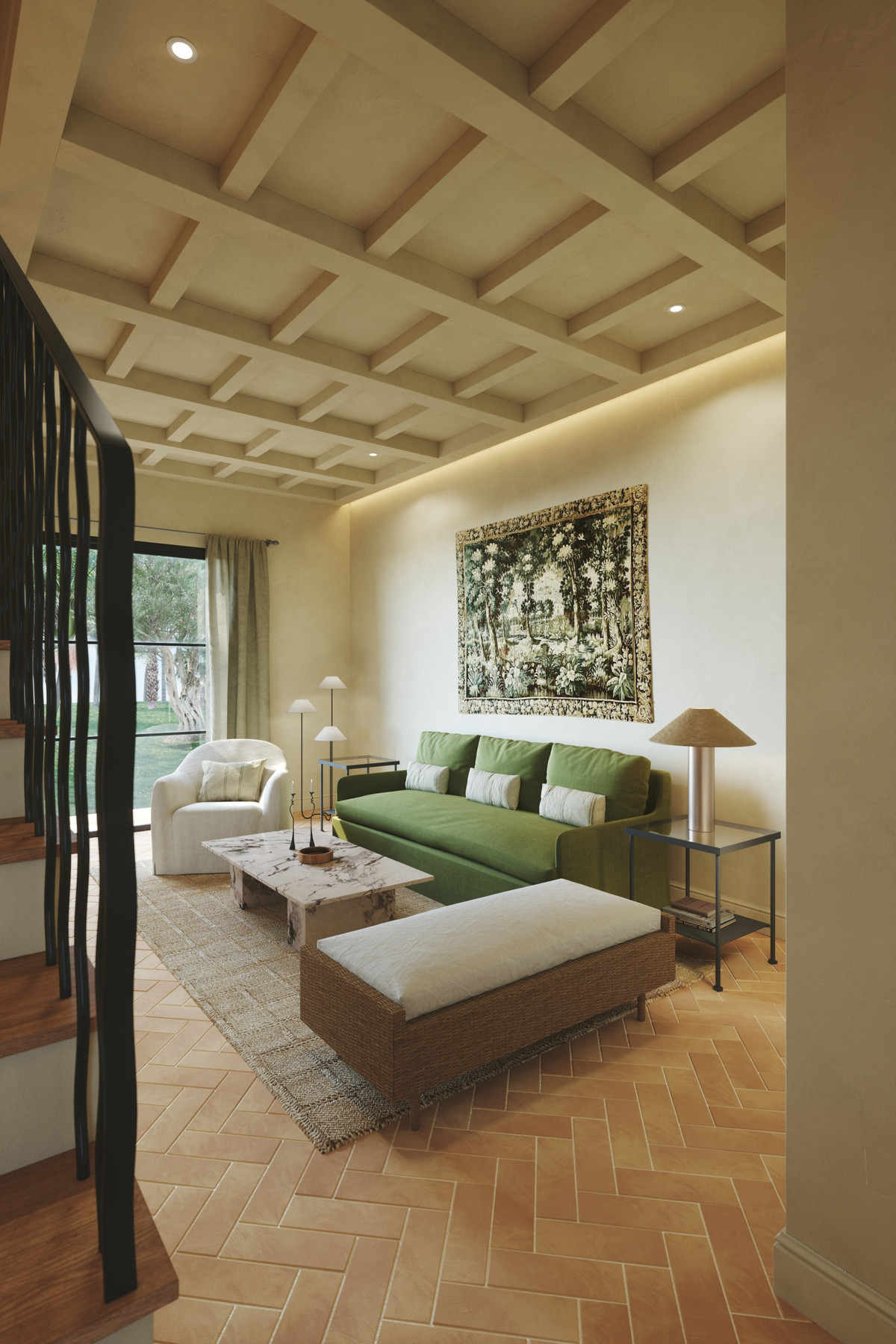 The hotel boasts numerous high-end amenities, including a private swimming pool, a heated saltwater pool, and a dedicated garage with ample space for multiple vehicles. The expansive private garden provides a serene escape, offering breathtaking views of the surrounding mountains, countryside, and golf course.