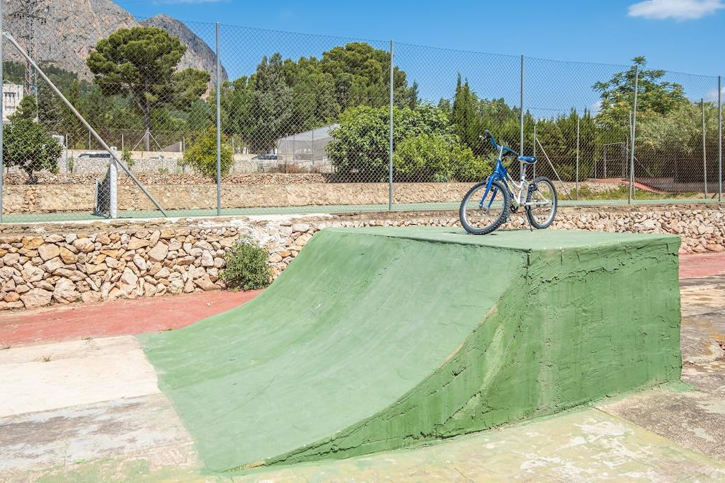 På den solrika tomten finns en stor parkeringsplats för många bilar och den är indelad i flera zoner. Det finns två områden för att äta och koppla av utomhus, en bouleplan, pool, skatepark, grillplats och en tennisbana. Fastigheten erbjuder många möjligheter och ägarna hyr ut bostaden för kortare perioder.