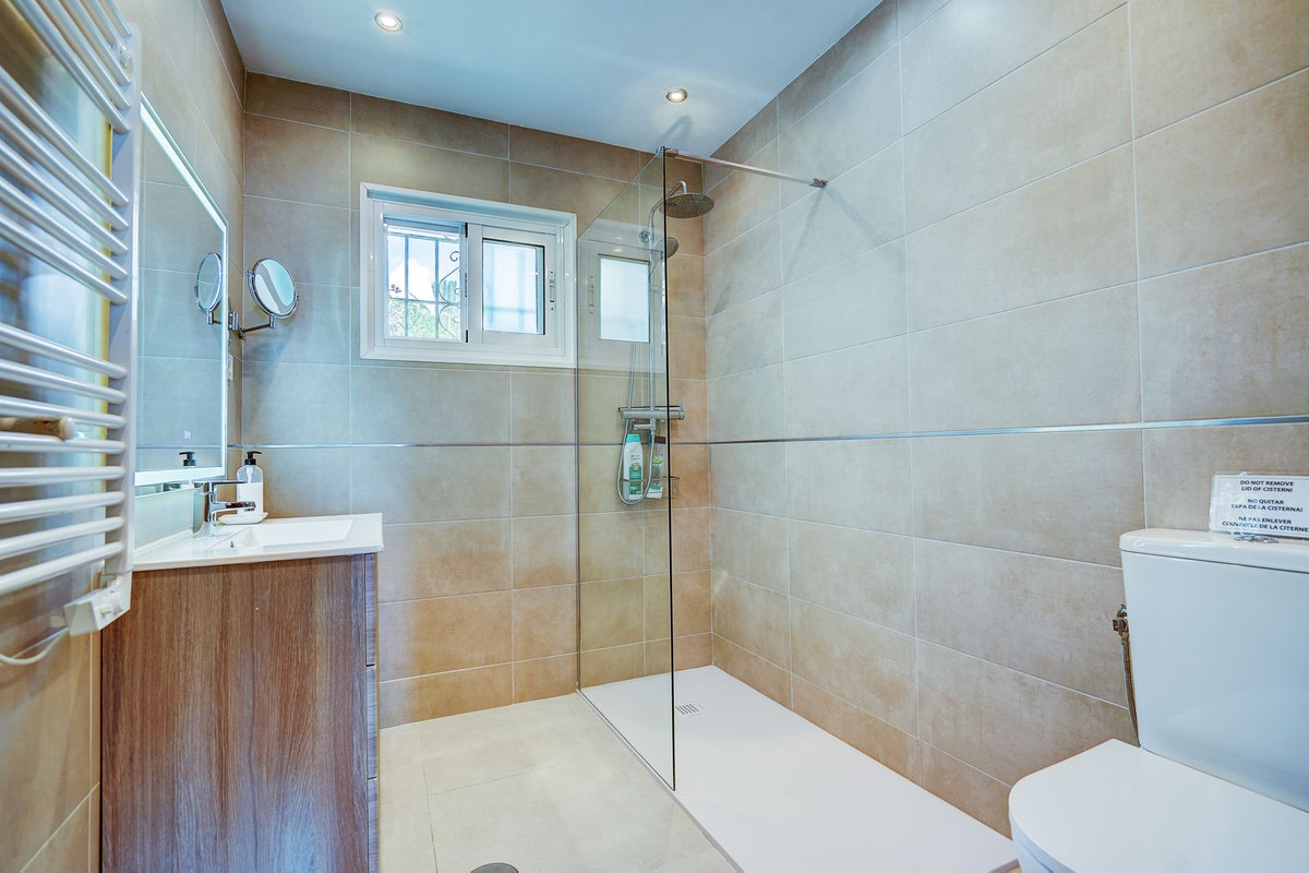 On the lower level, a fifth bedroom with ensuite bathroom, a cosy second lounge, and an additional kitchen create the perfect setup for a self-contained guest apartment. There's also an office, a fourth bathroom, plenty of storage space, and room to add more bedrooms if desired. Outdoor features include spacious terraces, a lawned garden, and a large private swimming pool—perfect for enjoying the Costa del Sol sunshine. The home also benefits from air conditioning, double glazing, fibre-optic internet, a double garage, and is offered part furnished.