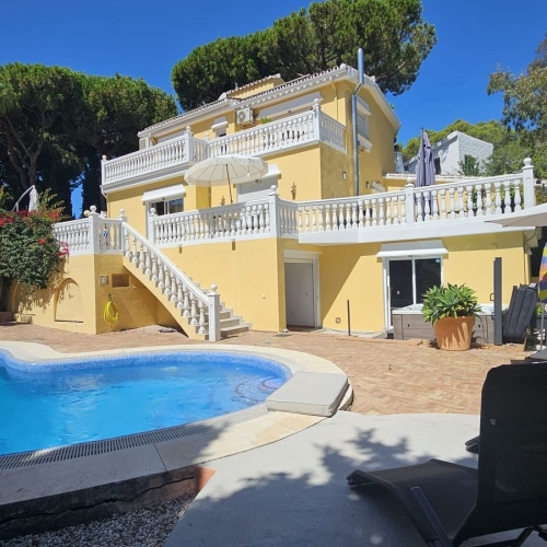 This detached four-bedroom villa is located in one of western Calahonda's most desirable residential areas, just a short walk from the beach and local shops, yet tucked away on a peaceful street. Part of an exclusive community of just nine villas sharing a communal pool, this is the most private property in the development.