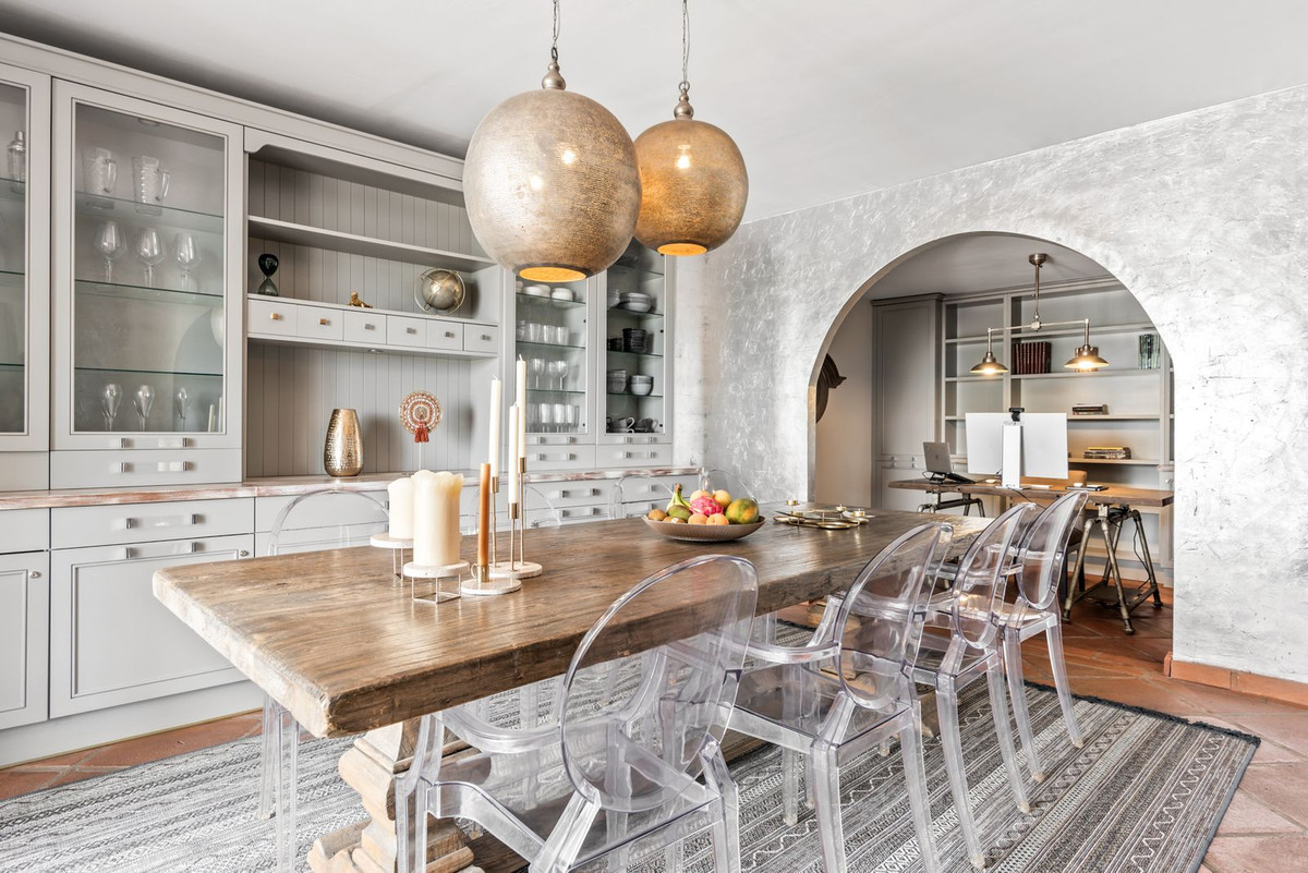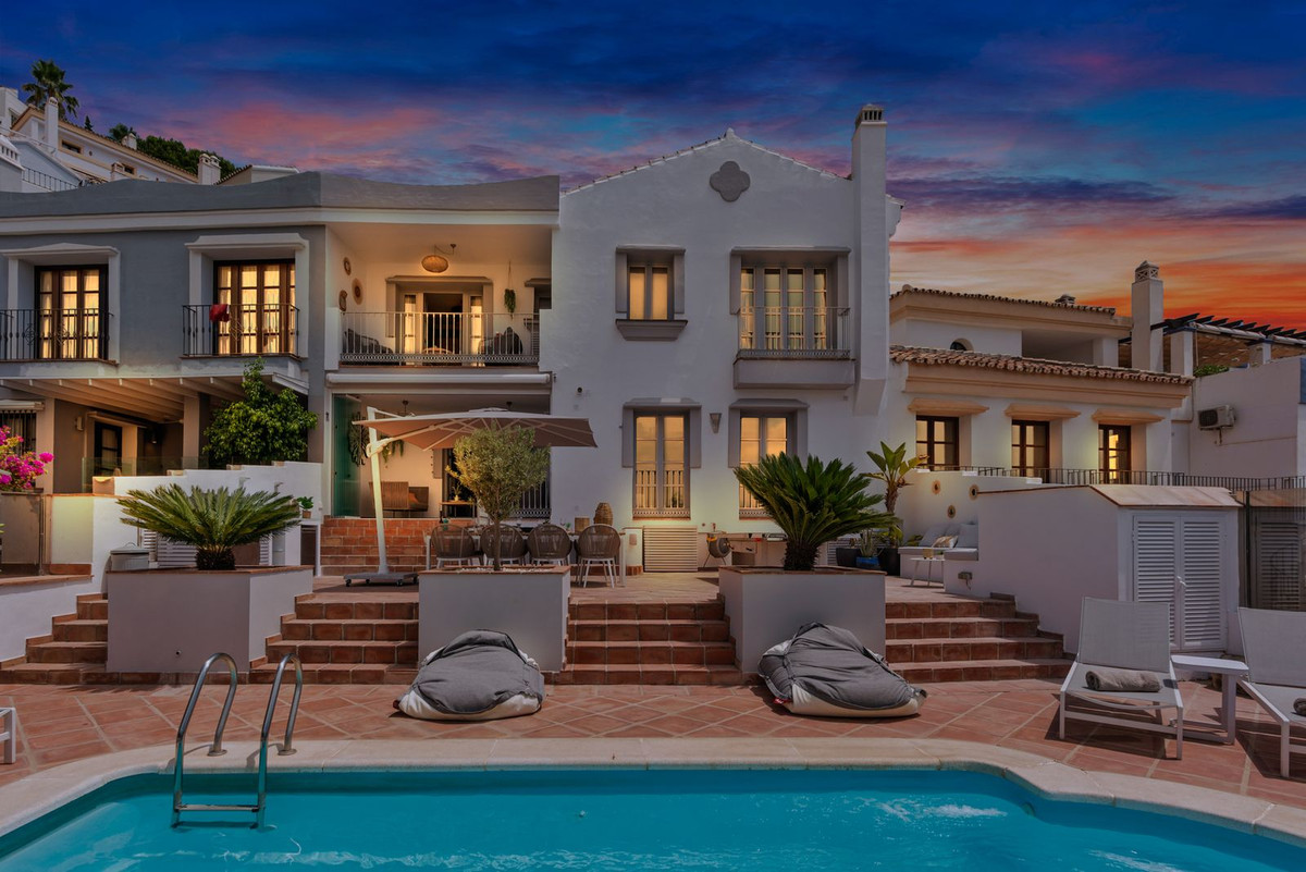 Located in the award winning village of La Heredia, close to Benahavis on the Ronda road, this beautiful 5-bedroom townhouse offers spacious living in a private, secure community. Enjoy breathtaking views of the mountains and sea from the main living areas. Every single house is unique in this beautiful village where tourists flock to photograph it.
