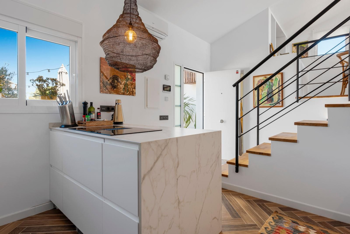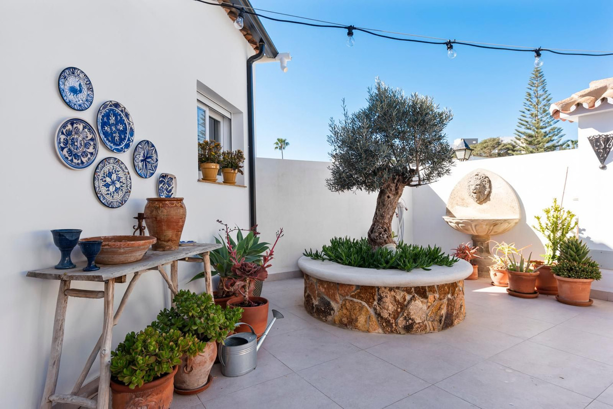 Vid ankomsten välkomnas du genom en fantastiskt iscensatt innergård, centrerad runt ett majestätiskt olivträd, vilket skapar en lugn och inbjudande atmosfär. Detta underbara utomhusutrymme är utformat för utomhusliv, med en grill- och uteservering, en dedikerad prep-station, en charmig fontän och utsökt inredning inklusive frodiga krukväxter, autentiska andalusiska väggmonterade tallrikar och unika handgjorda bitar.