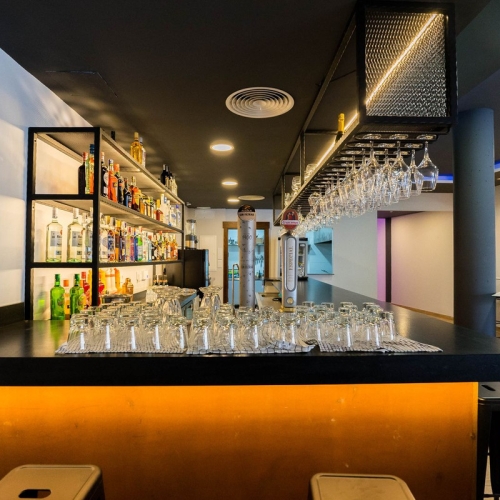 In the bar we find a fully equipped kitchen with stoves, ovens, and all necessary appliances. In addition, it has a warehouse to deposit goods and a large cold room where to keep fresh products with different refrigerators. When leaving the bar you will find the bathrooms, a recreational area with billiards and an outside terrace overlooking the pool.