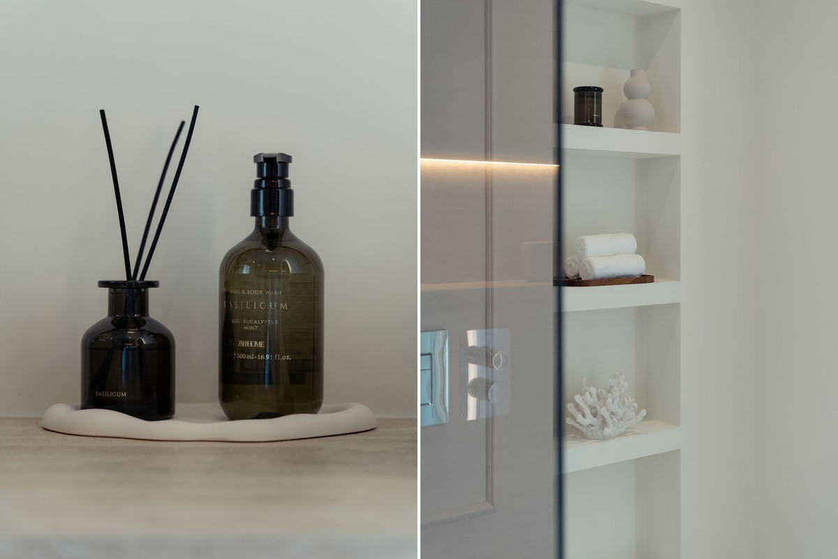 The open-plan kitchen, dining, and living area flows effortlessly onto a south-facing terrace, where unobstructed sea views set the scene for both relaxing mornings and unforgettable sunsets. Large windows fill the home with natural light, enhancing its airy and cozy feel.
