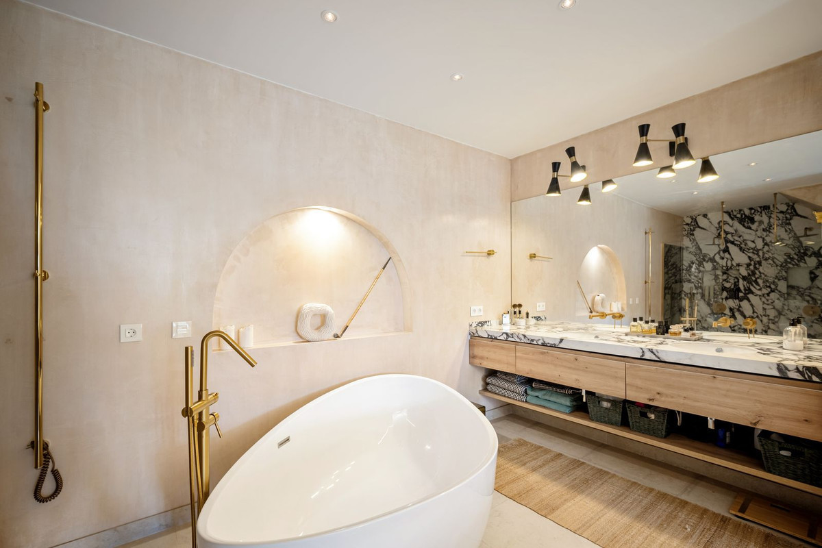 Beläget i det prestigefyllda bostadsområdet Golden Mile i Marbella, kombinerar detta nyrenoverade radhus i andalusisk stil sömlöst traditionell arkitektur med moderna nordiska interiörer och erbjuder en unik blandning av charm, komfort och funktionalitet.