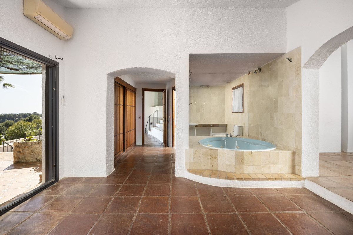 The ground floor welcomes you with a grand entrance hall, followed by a sunken room overlooking the whole area of Mijas all the way to the sea, a spacious living room, dining room, and a separate kitchen with utility room. From the hallway there's a raised section with 3 rooms and its own entrance – ideal as a guest wing or home office. Also on this level are 3 bedrooms (with jacuzzi) and 2 bathrooms.