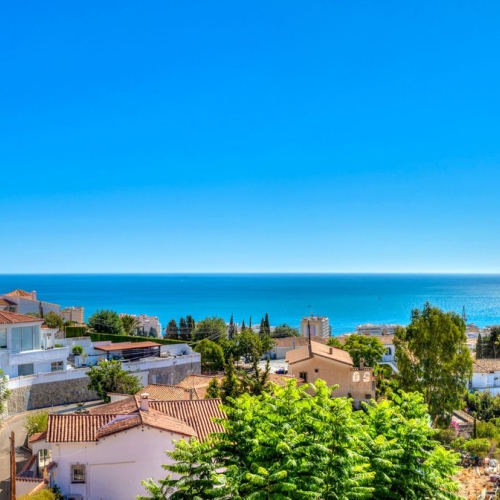 Set over two generous levels, this standout duplex penthouse offers a rare blend of elevated views, natural light, and versatile indoor-outdoor living, all within a quiet and secure community in Torreblanca. Whether you're seeking a stylish full-time residence or a quality holiday escape, this property delivers the space, setting, and lifestyle you've been looking for. The main level welcomes you with a bright, open-plan living area featuring a fireplace and direct access to a large covered terrace boasting uninterrupted views of the sea, mountains, swimming pool, and port of Fuengirola. A separate, fully equipped kitchen offers functionality and flow, while an additional room on this level can serve as either a guest bedroom or home office, conveniently served by a full bathroom with walk-in shower. Upstairs, a private hallway connects two spacious sized double bedrooms, each with built-in wardrobes and access to two open terraces that capture 360º views of the surroundings, with complete privacy. The primary suite includes an en-suite bathroom with bathtub, while the second bathroom is perfect for guests or family.