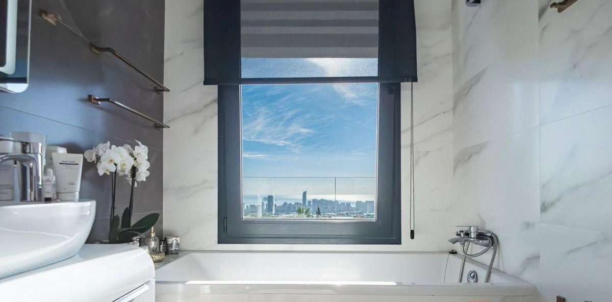 Exquisite villa with private pool and panoramic views in Sierra CortinaWelcome to a stunning 389 m² villa located in the exclusive and coveted area of Sierra Cortina, Finestrat. Built in 2019 and in impeccable condition, this elegant 5-bedroom, 5-bathroom property sits on a generous 750 m² plot, offering an unparalleled luxury lifestyle.From the first step, the villa radiates elegance and sophistication. Its spacious spaces flooded with natural light, along with premium marble and ceramic finishes, create a warm and inviting atmosphere. The interior design seamlessly integrates the living and dining areas, and a separate kitchen fully equipped with high-end appliances. It also features spacious dressing rooms and en-suite bathrooms, designed for maximum comfort.???? A full basement provides versatility and extra space, while a lush garden and a sunny terrace invite you to enjoy the outdoors ????????. The private pool ????♀️ is the icing on the cake for an unbeatable living experience.????♂️ This architectural gem stands out for its unique details:- Private gym ????️- Outdoor elevator for added convenience ????- Bio-fireplace for cozy evenings ????- Southeast-facing balcony ???? guaranteeing all-day sun???? The villa includes a complete security system: alarm, armored main door, and electronic access, providing peace and tranquility to its residents ????️????.Enjoy open views of greenery and mountains, creating a serene and inspiring environment. It also features master bathrooms, a guest toilet, and a laundry room, masterfully combining functionality and style.Experience luxury at its finest in this exclusive property. Its impeccable design, top-notch amenities, and prime location make it a unique opportunity for those seeking the best of the Costa Blanca.Don't miss the chance to make this magnificent villa in Sierra Cortina yours!