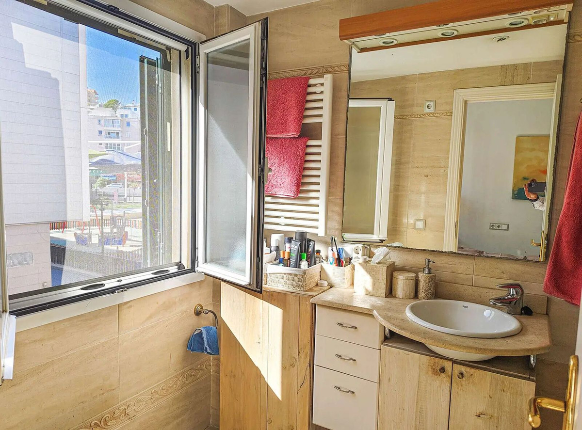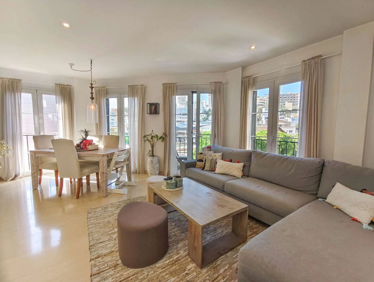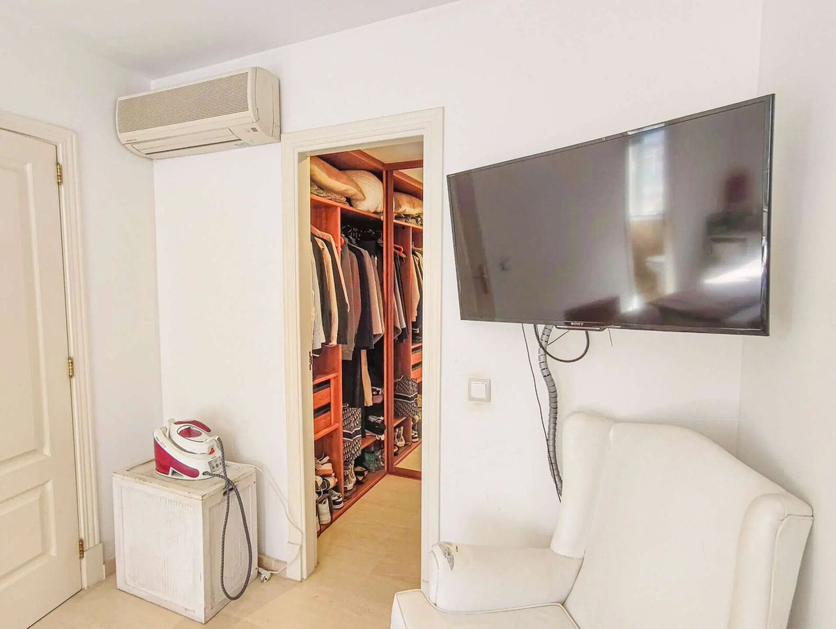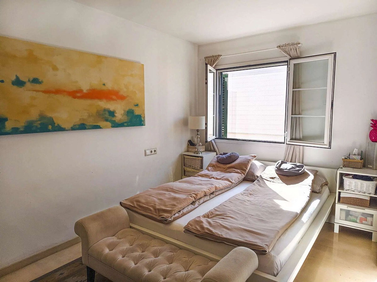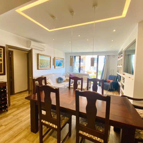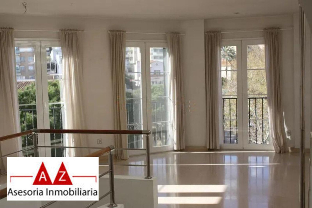 Duplex penthouse in the Porto Pi area, with a 175m2 solarium terrace, less than 2 minutes from the seafront promenade, bus stops, a 24-hour pharmacy, and the Porto Pi shopping center with all its amenities. On the ground floor, there is a small entrance hall, a toilet with shower, a large built-in wardrobe, and a triple bedroom with a dressing room and en-suite exterior bathroom. Up a small flight of stairs is the living-dining room, a fully equipped modern kitchen, another exterior-facing double bedroom with a built-in wardrobe and en-suite bathroom, and a short, beautiful hallway that coincides with the space under the stairs leading to the terrace. The solarium features a 55m2 terrace with views of the sea, the cathedral, and the Porto Pi maritime area with San Carlos Castle and the sea in the background. The entire house is very bright. All rooms are exterior except for the toilet and the upper bathroom. Air conditioning with heat/cold pump is available in the living room and all bedrooms. Gas heating is available in all rooms and in the bathrooms via towel racks. PVC exterior carpentry with double glazing. The price includes a 4.5 m² storage room and a 12 m² parking space. Another 12 m² space is possible. The building was built in 2002 in a traditional Mallorcan style. The building is very quiet with only four neighbors, two per floor. The property is very well maintained. Community fees are approximately €70 per month. There is no elevator and the apartment is located on the first floor and a half from street level and a second floor and a half from the garage.