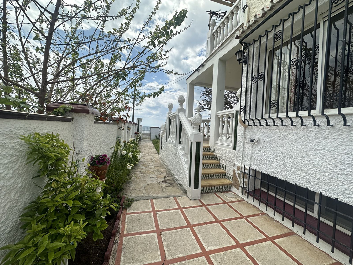 Beachfront! Semi-detached house in need of renovation with direct access to the beach, a beautiful front garden with the possibility of creating a pool, and a cozy patio at the rear. It is distributed over two floors: a living-dining room, a bathroom, and a kitchen. The upper floor has three bedrooms and a full bathroom. The basement has a spacious bedroom with a high window and a large storage room. Parking space.