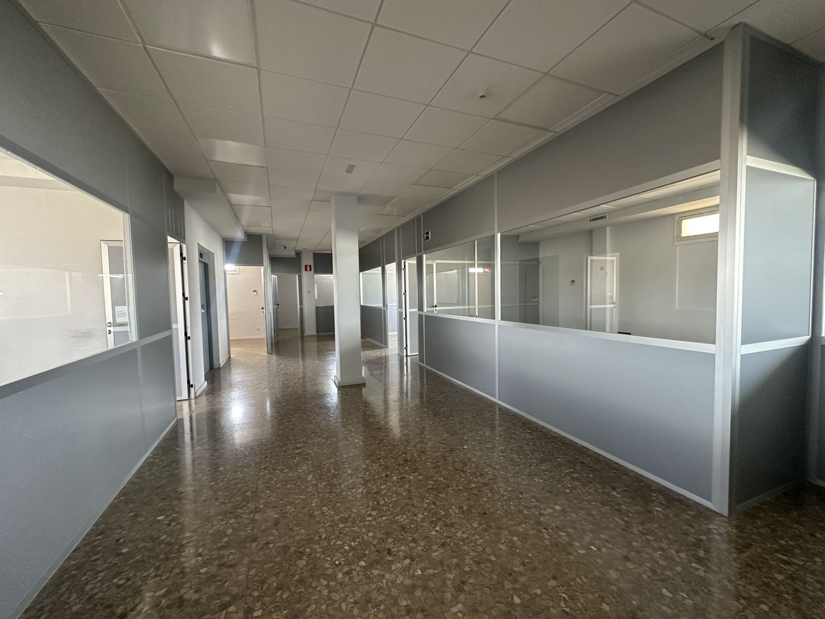Warehouse A: 5 m high, open-plan with a mezzanine at the rear, equipped with 3 offices, 1 bathroom, and 1 bedroom. Main entrance: 2 wooden gates for carriage entrance and 2 separate doors for passengers. Secondary access: 1 double-leaf metal door.