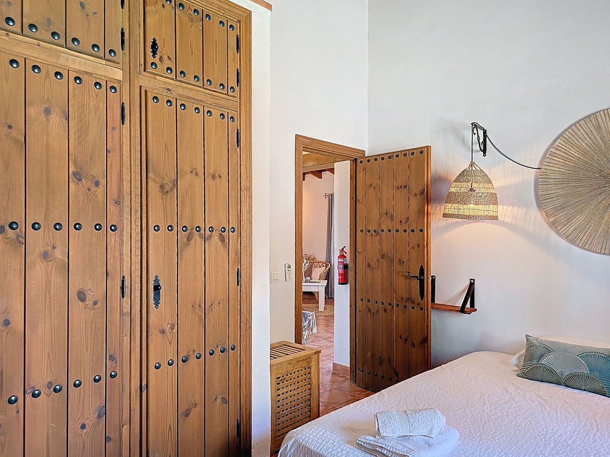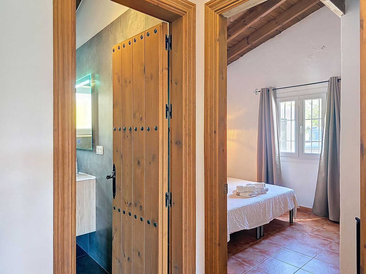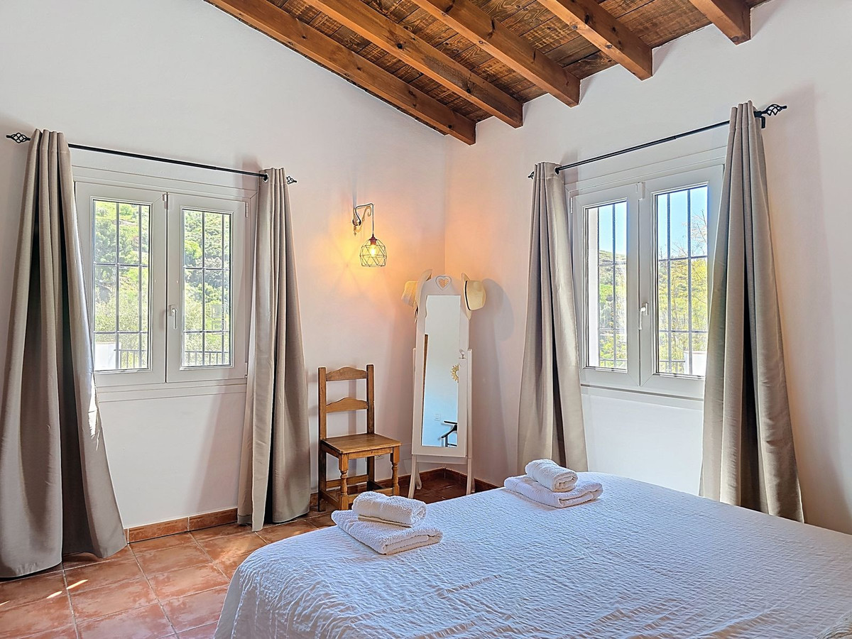 Eiendommen tilbyr tre velproporsjonerte doble soverom, hvert med innebygd bod og utsikt over det omkringliggende landskapet. Ett av soverommene har eget bad, noe som gir ekstra privatliv og bekvemmelighet. Et andre bad i familiestørrelse er ferdig med tradisjonelle andalusiske fliser og stilig inventar, og tilbyr et lyst og funksjonelt rom for både beboere og gjester.