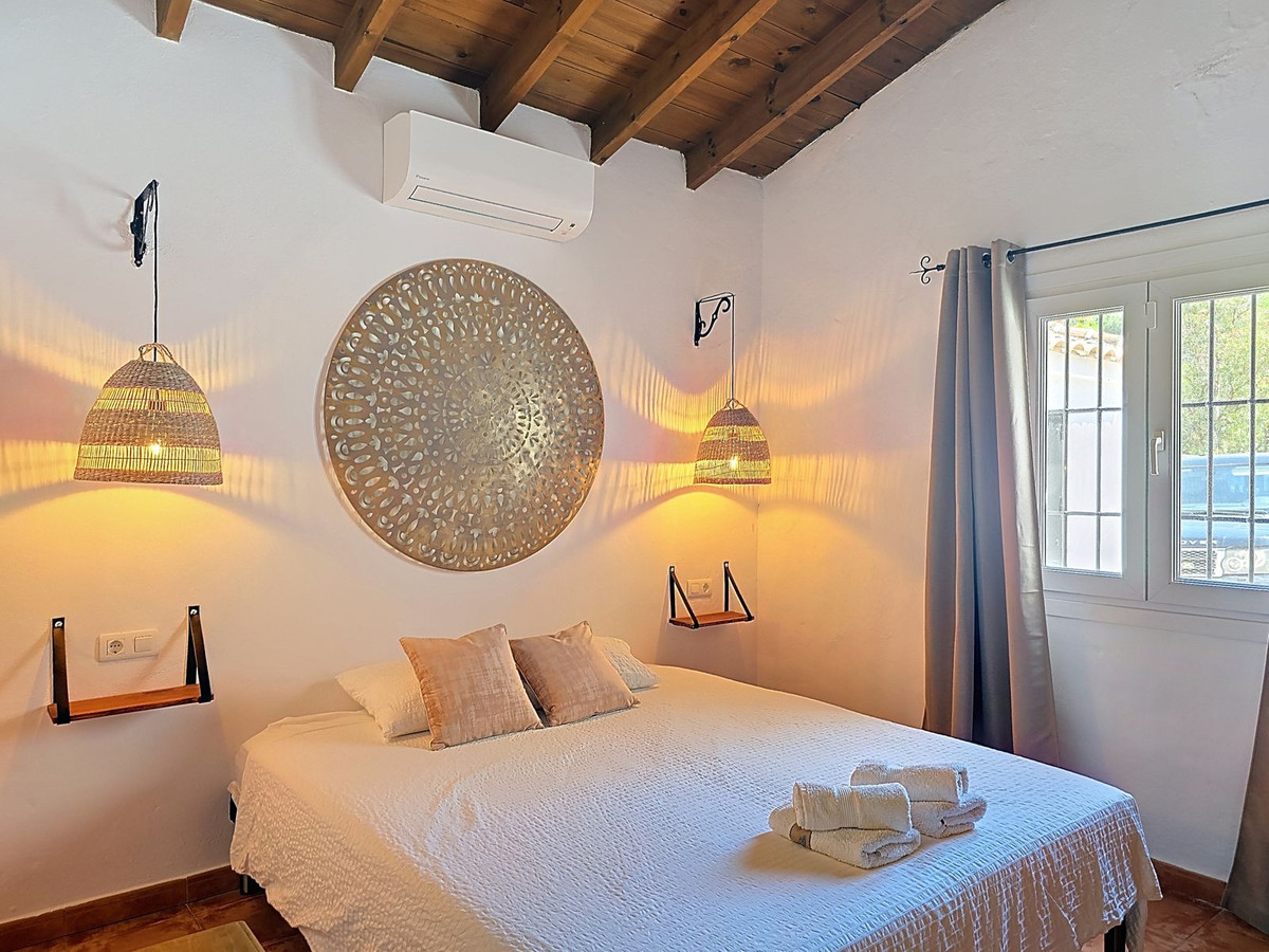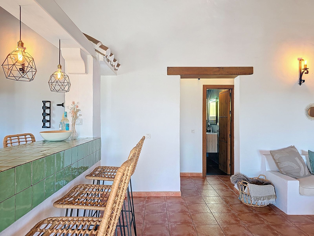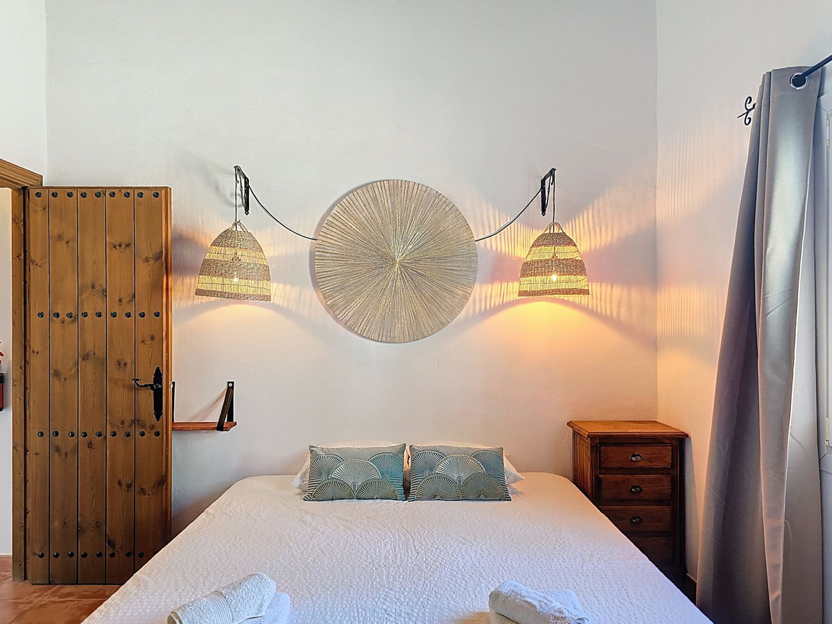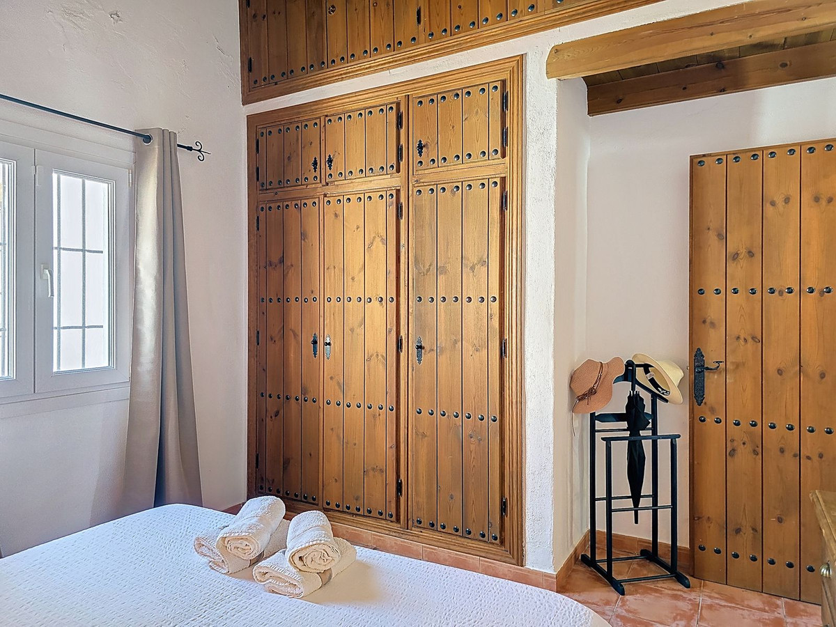 Eiendommen tilbyr tre velproporsjonerte doble soverom, hvert med innebygd bod og utsikt over det omkringliggende landskapet. Ett av soverommene har eget bad, noe som gir ekstra privatliv og bekvemmelighet. Et andre bad i familiestørrelse er ferdig med tradisjonelle andalusiske fliser og stilig inventar, og tilbyr et lyst og funksjonelt rom for både beboere og gjester.