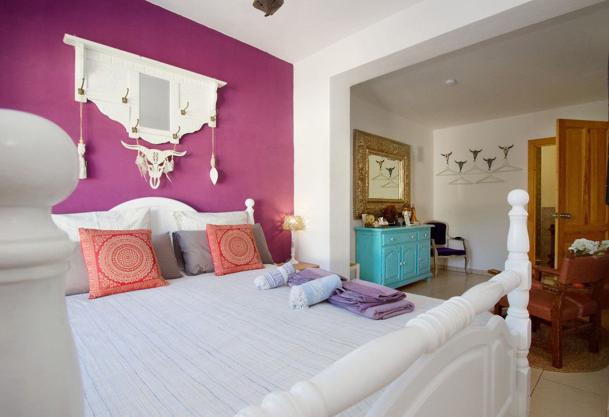The single-story building was designed with rental optimization and the guest experience in mind. It features two master bedrooms with separate entrances from the garden, each with en-suite bathrooms, plus a third bedroom in the main house. It also features a separate studio with a bedroom, en-suite bathroom, kitchen, and separate living room, ideal for additional accommodation or exclusive services. A very private porch completes the whole experience, allowing guests to perfectly enjoy the surroundings.