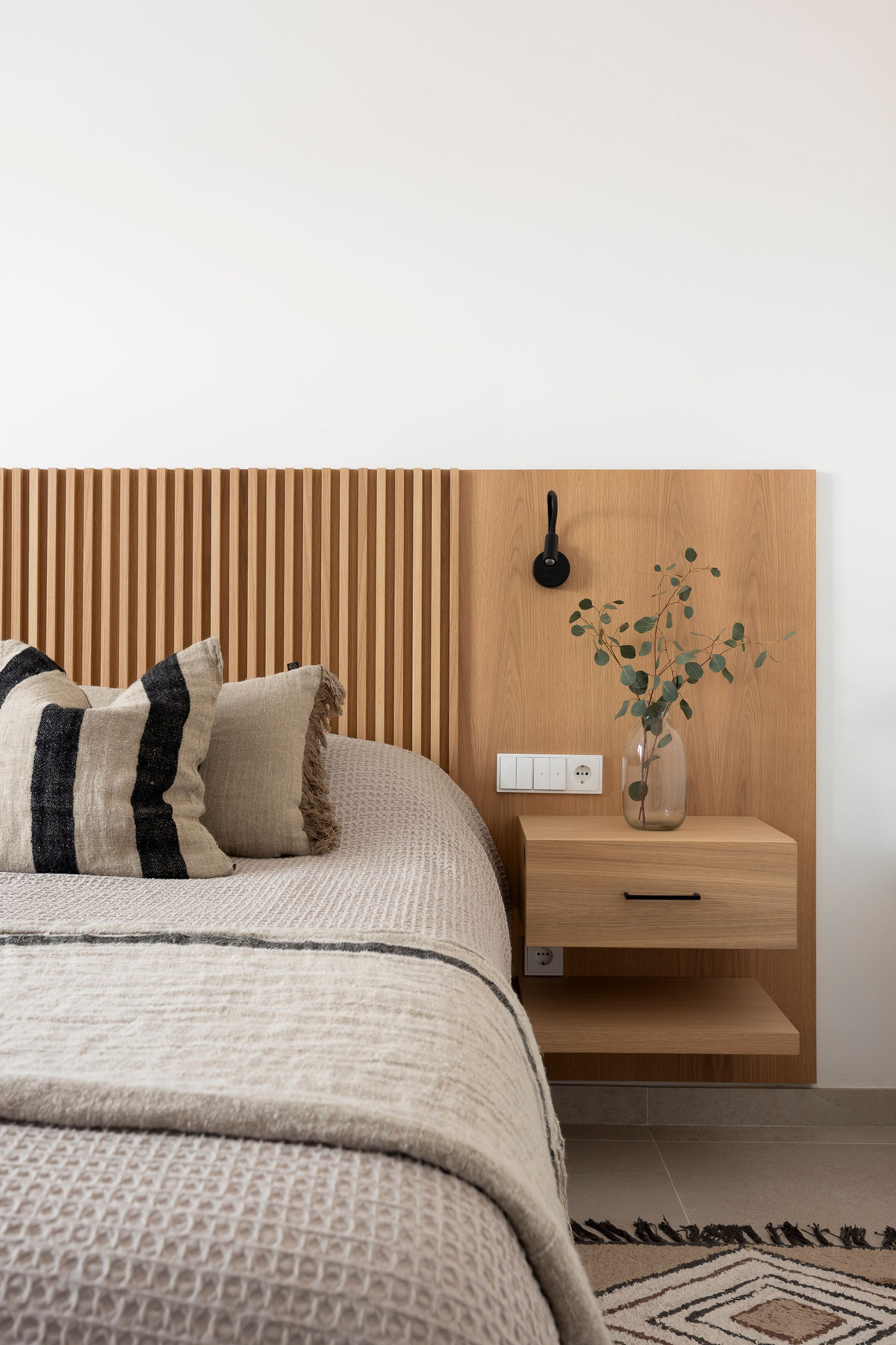 Boho-inspirerad inredning kompletterar den funktionella planlösningen.