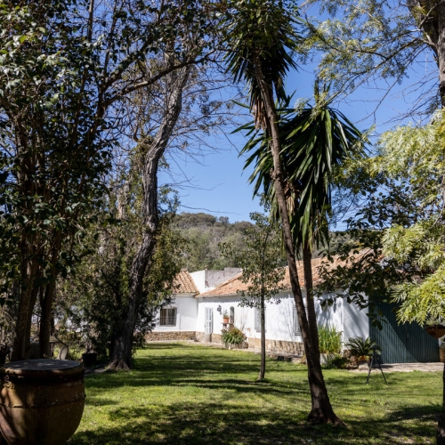Olive grove, mature gardens, and abundant fruit trees creating a lush, natural sanctuary