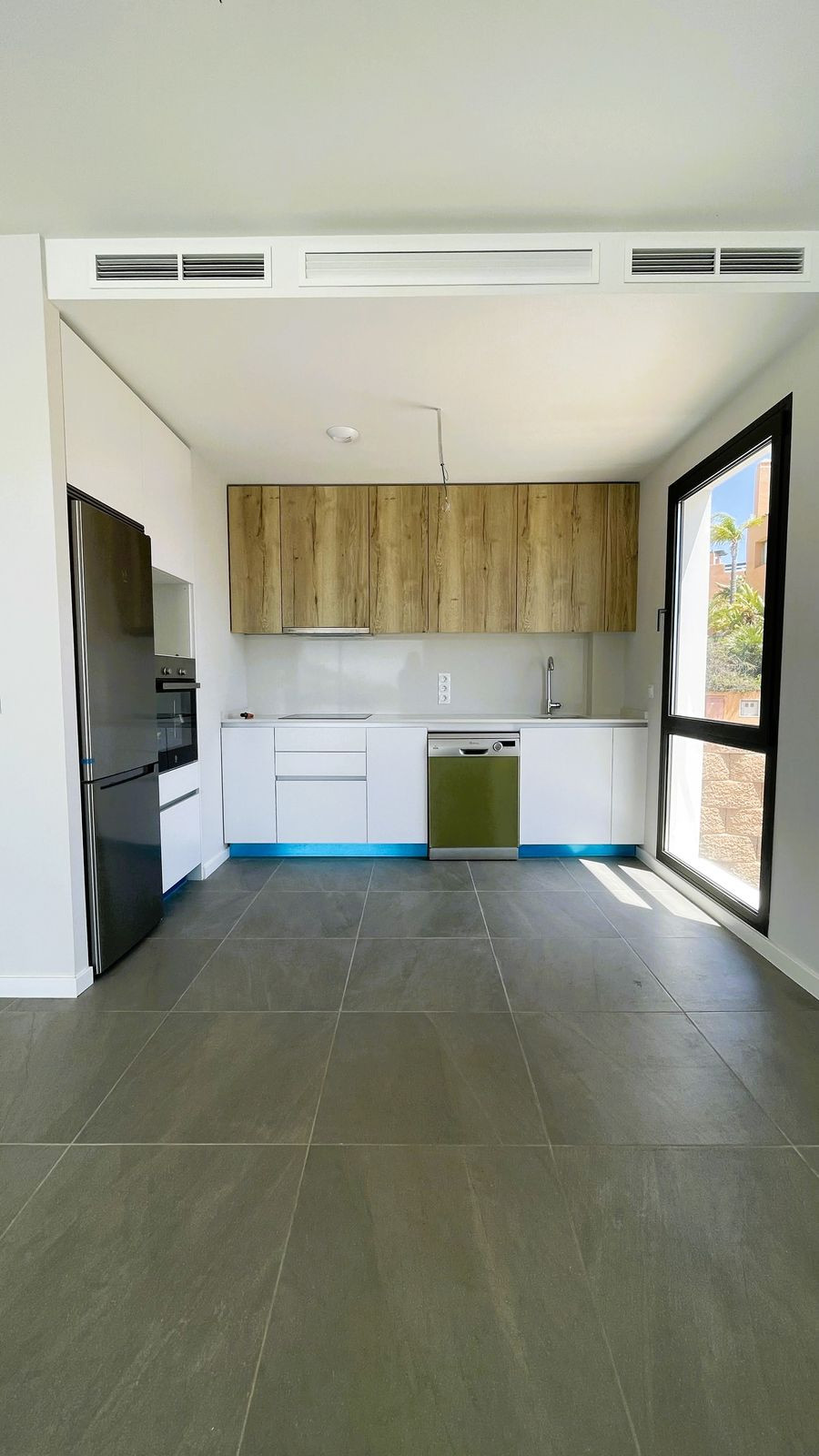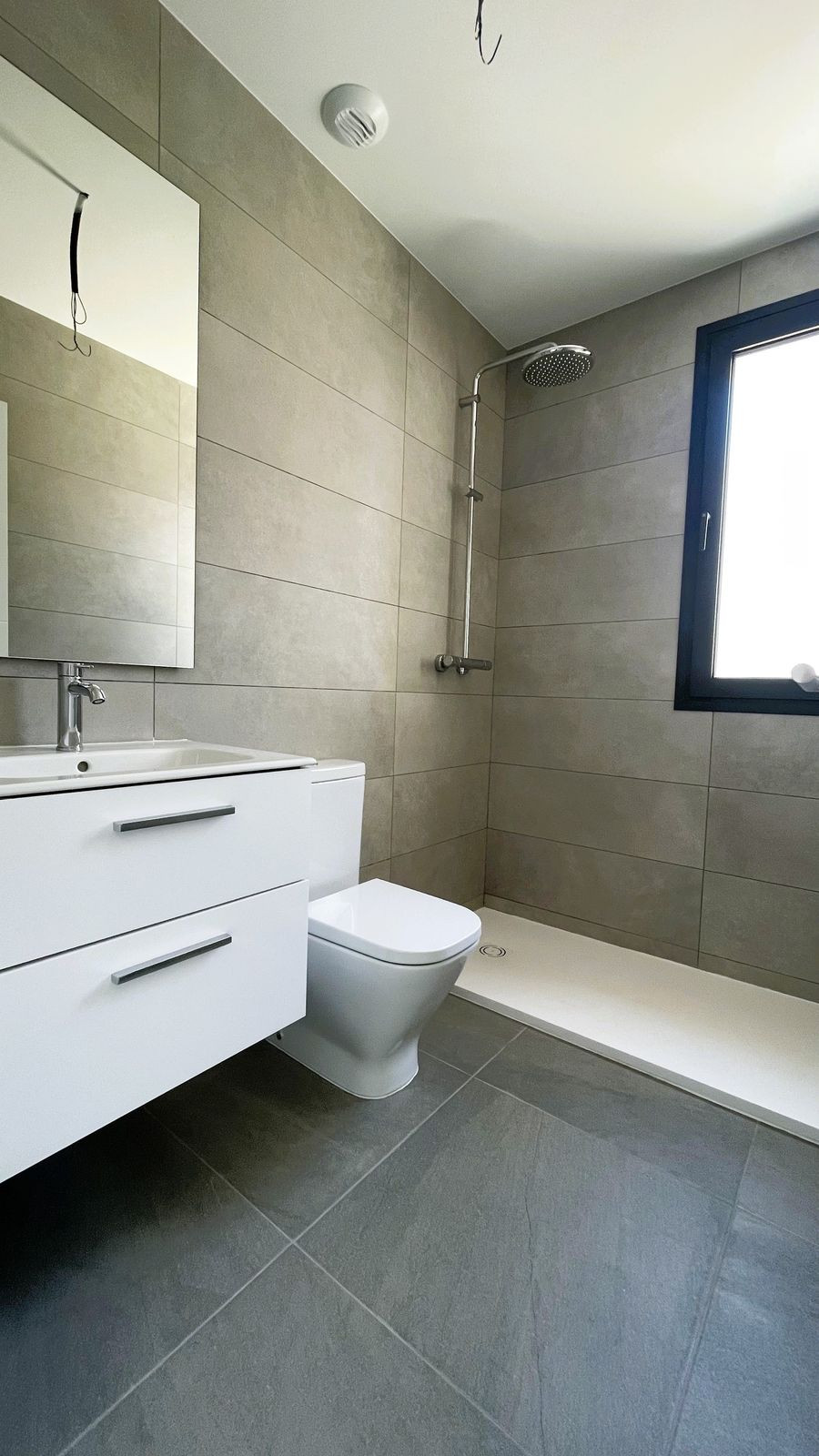 The main entrance leads to an inviting upper floor featuring an open-concept living-dining room and a fully equipped open-plan kitchen, plus a convenient guest toilet. The highlight? A spacious 8m+ terrace offering stunning panoramic sea and mountain views, perfectly oriented for afternoon sun with its southwest aspect.