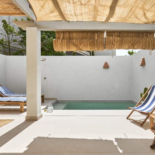 The master bedroom has a terrace with beautiful views of the Mediterranean Sea.