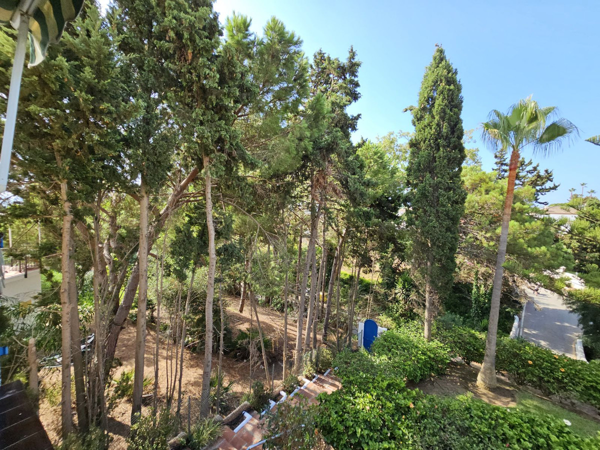 Corner townhouse with a private garden, just a stone's throw from the beach and a few minutes from Cala de Mijas. This two-story townhouse needs a touch of modernity, as it is a Mediterranean-style house built in the late 1980s. On the ground floor of the house, we find four areas: a bedroom with an en-suite bathroom, ideal for those who have difficulty navigating the stairs. A large, fully equipped kitchen, a guest toilet, a large living room divided into two parts, with a fireplace and reading area and a separate dining area, and a very pleasant terrace overlooking the magnificent green area of this development. On the ground floor, we have two bedrooms, a bathroom, and access to a garden divided into three terraces, surrounded by trees and all kinds of plants. Tranquility yet proximity to the beach with direct access from the garden.