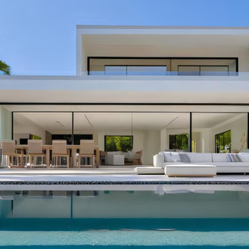 Den öppna och ljusa arkitekturen suddar ut gränserna mellan inne och ute, och kombinerar sofistikerad lyx med den medelhavska kustens charm.