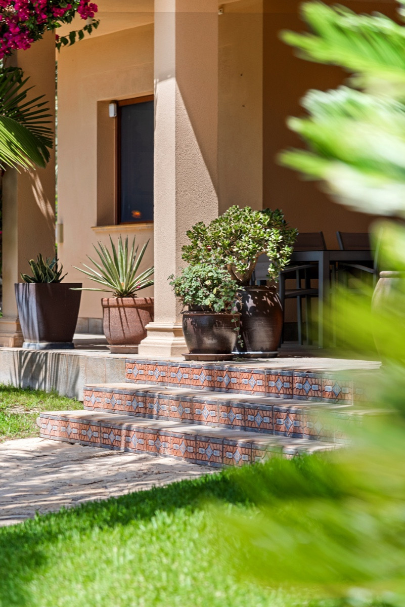 The property has spacious and well maintained outside areas. Before entering the property, you will find a big porch with lots of shade for the warm summer days. The garden is beautiful, and here you will also find a fully equipped outside kitchen.