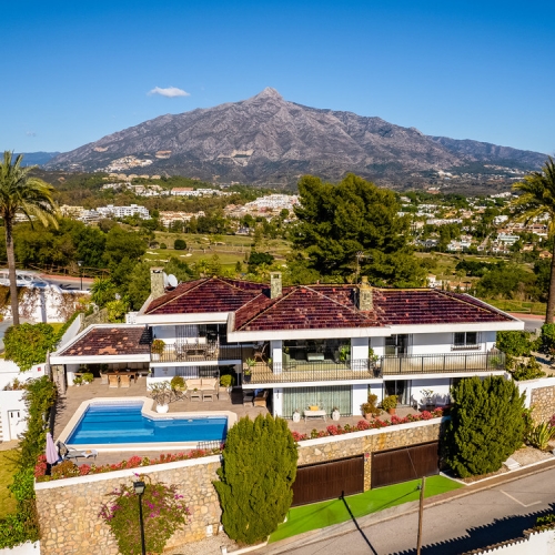Welcome to this great fully refurbished family villa in the Golf Valley. As you enter the living, dining and open plan kitchen you are greeted with an abundance of light and space. From here you have direct access to the beautifully manicured gardens, gazebo, heated pool and open terraces with shaded large sails for extra comfort. The house is well thought out creating private space on the master level and then you have 2 wings ideal for guest. There are 5 bedrooms and 4 bathroms, 3 of which are onsuite. On the living room level you have a laundry area and a guest toilet near by. The house was completely refurbished 6 years ago using natural colors to create a homely feeling. The house is complete with underfloor heating throughout, airzone ac systems both powered by an aerothermic system. This house is also ideal as a rental property due to its 5 bedrooms and distribution.