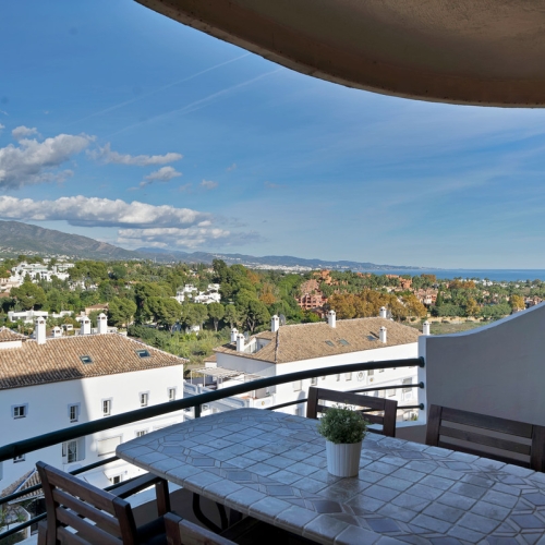 One of the apartment's standout features is its expansive, sun-drenched terrace, offering panoramic views of the Mediterranean Sea and the surrounding lush landscapes. It's the perfect setting for outdoor dining, relaxing, or entertaining guests year-round in the warm Costa del Sol climate.