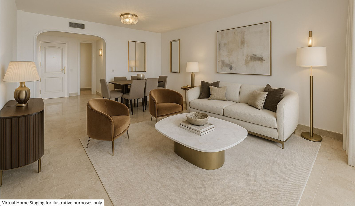 This two-bedroom flat with two underground parking spaces in Cumbres del Rodeo is being sold fully furnished at €585,000 excluding purchase costs.