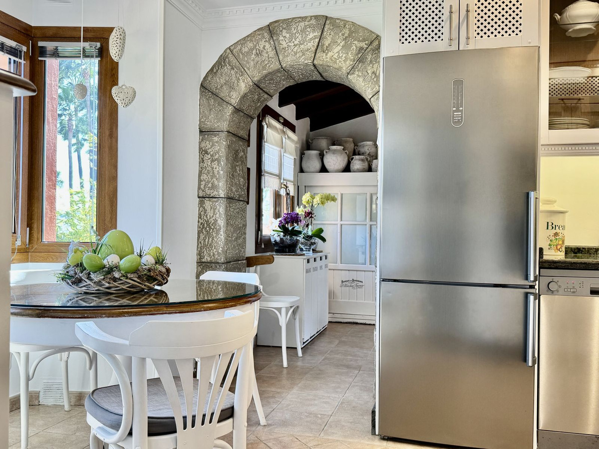 När du kliver in möts du av en liten, välkomnande hall. Till vänster ligger ett stort och praktiskt kök, fullt utrustat, med tillhörande rymlig tvättstuga/utility room med utgång till trädgården. Till höger finns en stilren gästtoalett samt trappa upp till övre våningen och till källaren.