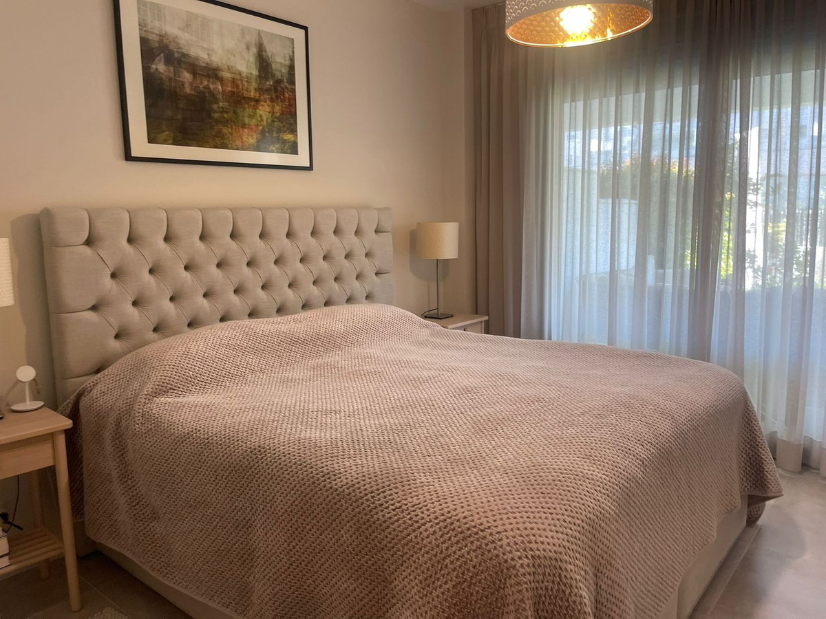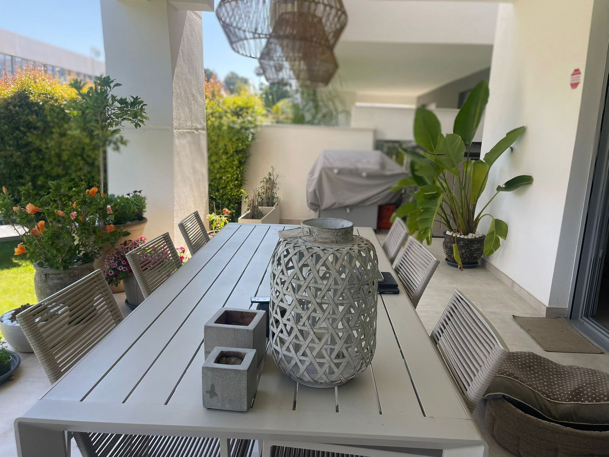 This stunning 3-bedroom, 2-bathroom apartment offers a perfect combination of style, space, and comfort. Featuring a large private garden and a large covered terrace, it's ideal for relaxing, entertaining, or simply enjoying the Mediterranean climate year-round. Inside, you'll find a modern, fresh interior with a spacious layout, high-end finishes, and a fully equipped modern kitchen with a separate utility area.