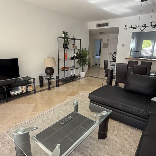 Fantastic top-floor apartment, south-facing, in El Presidente. The beautiful entrance, filled with aromatic plants, welcomes us, and as soon as we enter the hall, we appreciate how the entire apartment is bathed in sunlight. The spacious living and dining room, with large sliding glass doors, opens onto the very sunny terrace. The master bedroom also has direct access to the same terrace and features an en-suite bathroom. The second bedroom overlooks a charming pine forest. The second bathroom also serves as a guest toilet. The kitchen is fully equipped. El Presidente offers a large parking area, five swimming pools, one of them heated all year around, wonderful mature communal gardens with fountains, tennis and paddle courts, and 24-hour security. Amenities, supermarkets, and restaurants are within walking distance, as well as the beach, the new Estepona coastal path, and excellent restaurants such as Salduna, just 250 meters from the development. Do not miss the opportunity to visit this great opportunity!