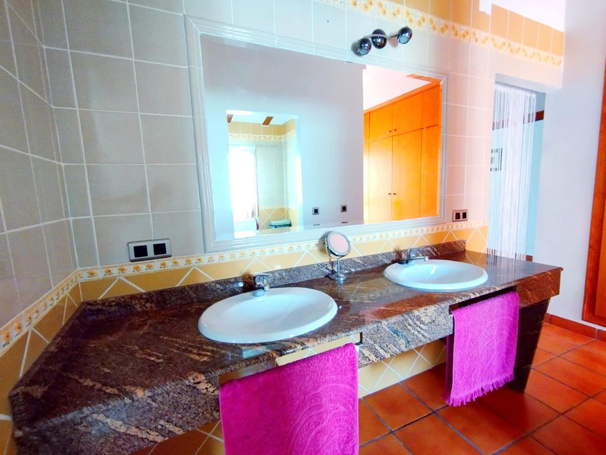 Huset är förvånansvärt stort och är i gott skick. På första våningen finns ett rymligt vardagsrum, ett öppet kök, ett stort sovrum, en tvättstuga, ett komplett badrum och ingång till garaget. Från köket kan du gå ut på en solig och privat uteplats som, på grund av sin unikhet, kan delas upp i flera områden. För närvarande finns det en sektion för att hänga kläder för torking, samt två zoner med tak. På övervåningen finns två stora sovrum som delar ett komplett badrum och själva huvudsovrummet. Huvudsovrummet är som en separat lägenhet, med en yta på cirka 60 kvadratmeter, komplett med en walk-in-closet och ett komplett badrum. Från dess fönster kan du se havet och Peñon de Ifach. I huset finns de luftkonditionering med värme och kyla.